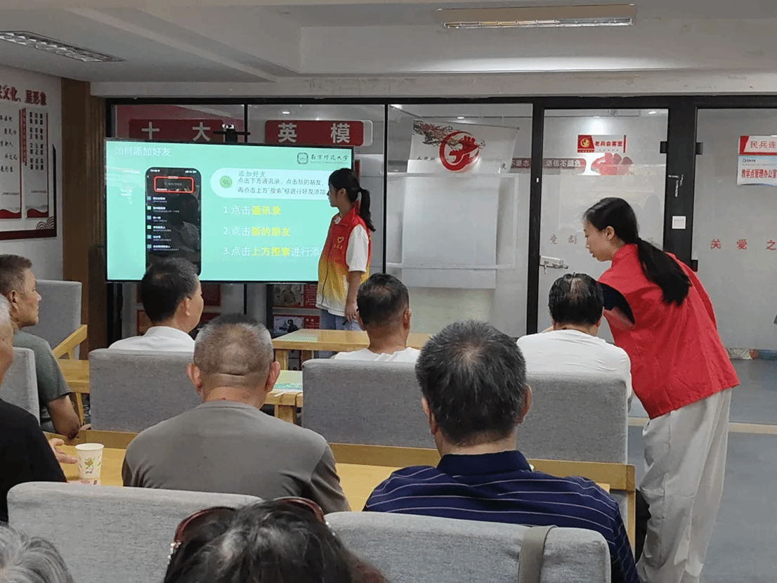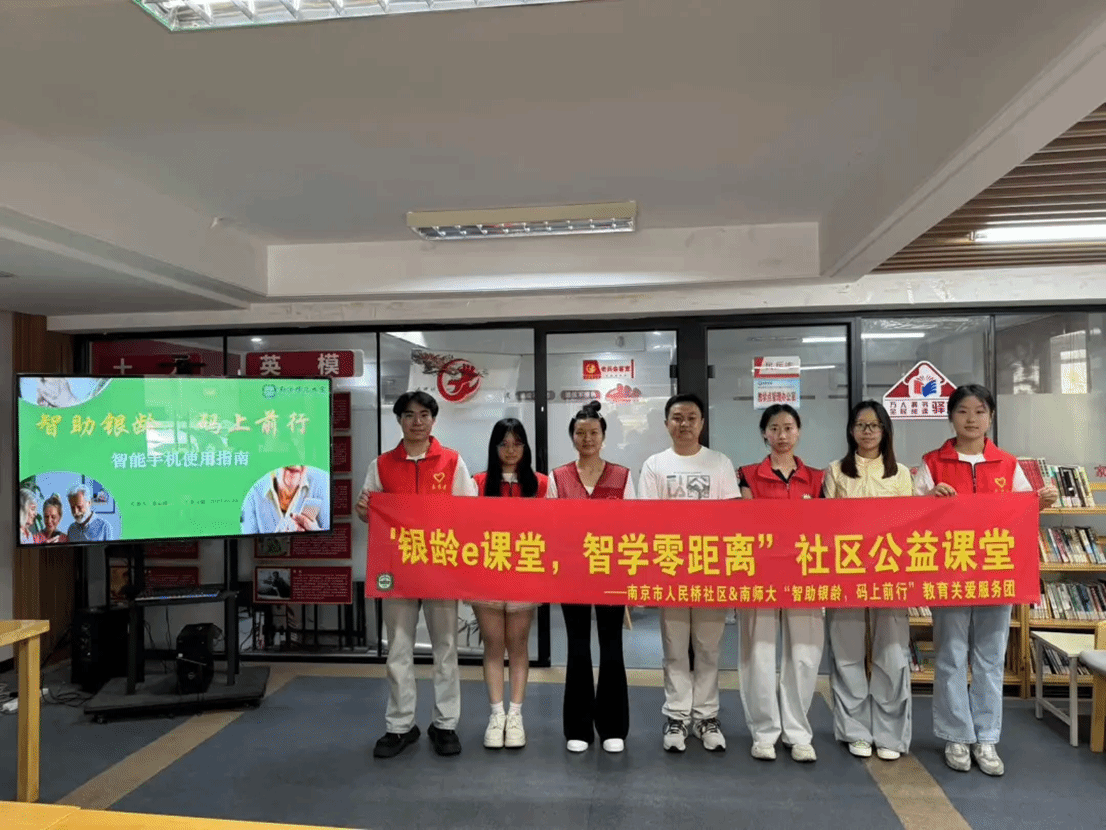 “智助银龄,码上前行”教育关爱服务团以习近平总书记“尊老敬老爱老”的重要指示精神为指导,走进南京市人民桥社区党群服务中心开展助老志愿活动。团队与社区党委共同学习党建微课,随后一对一指导老人使用微信视频、手机支付等智能服务,并普及易懂的防诈骗知识,助力银龄群体跨越数字鸿沟、畅享智慧生活。