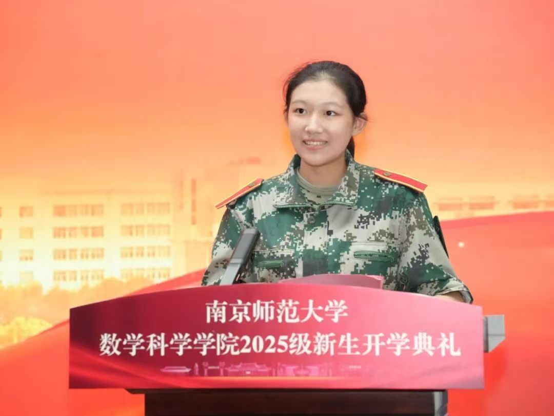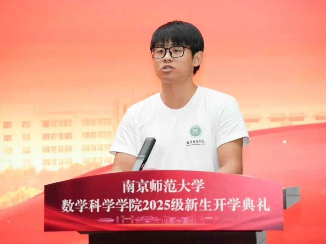 2025级新生代表李涵着重介绍了自己与南师数院的缘分,并表达了“做一名追光者、践行者并成为彼此的同行者”的共同愿景,带着“正德厚生”的温度和“笃学敏行”的底气,在南师数院的大树下,既做被摇动的那棵树,也做传递力量的那朵云。