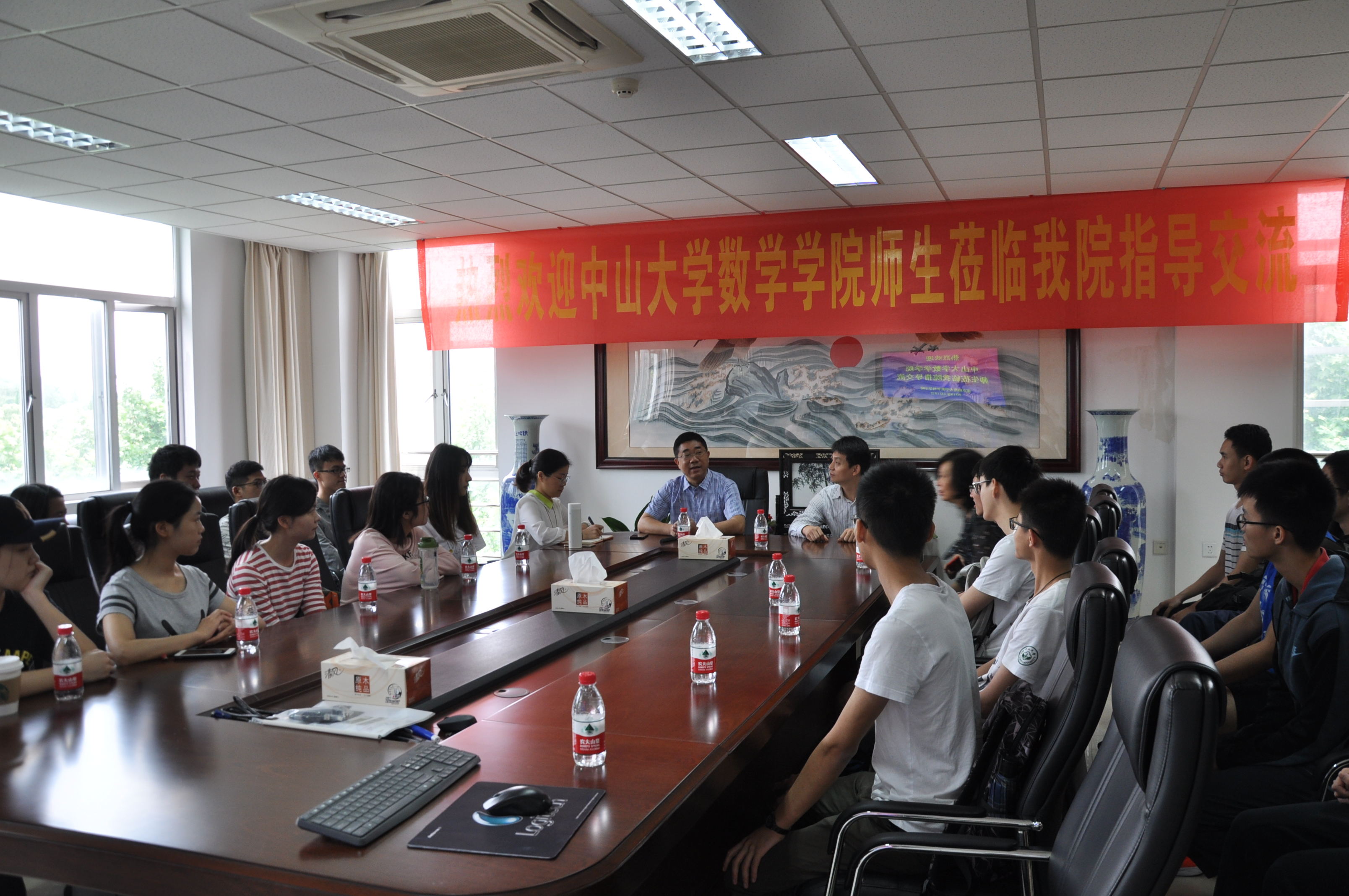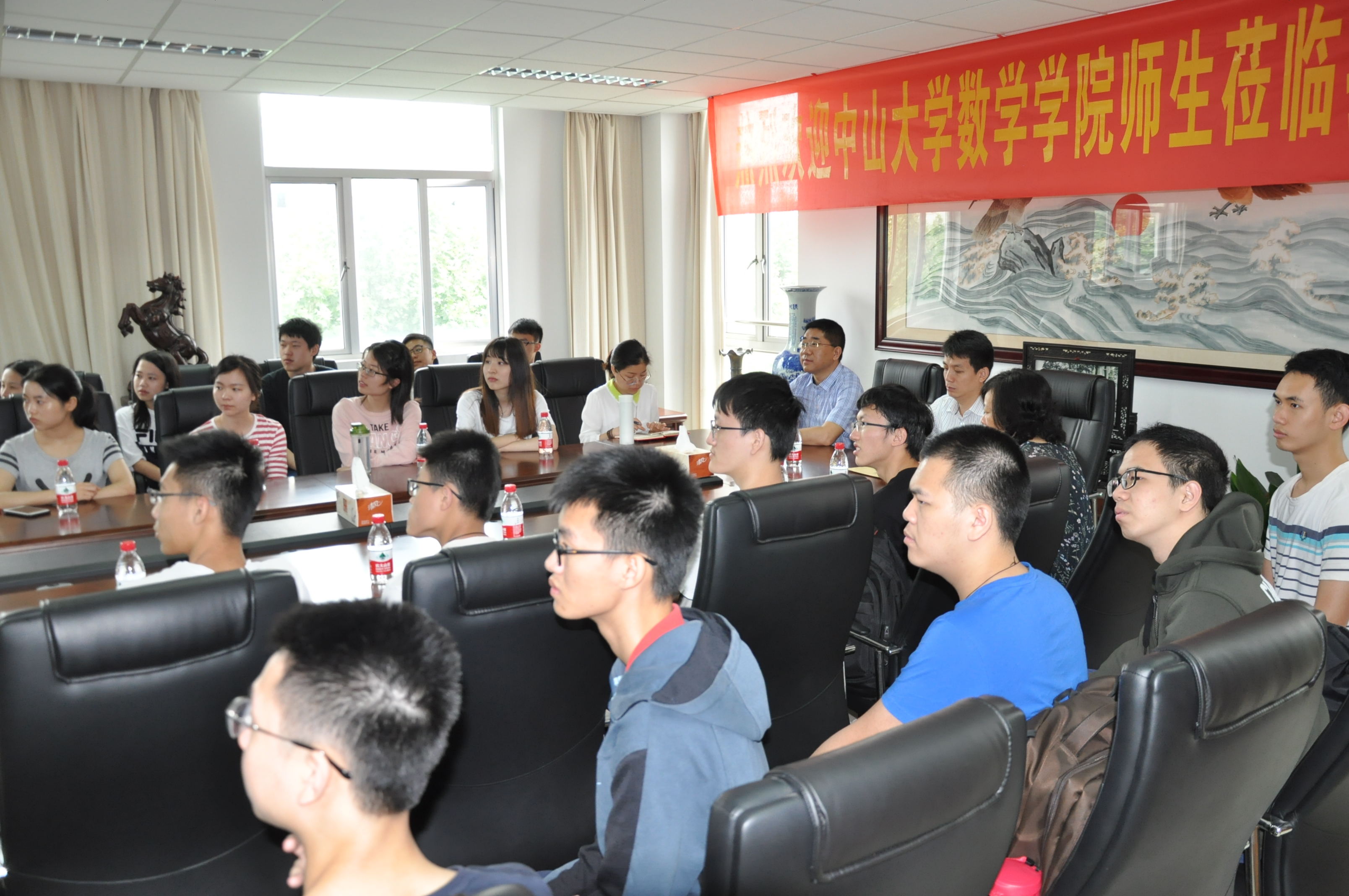 、师资队伍、学科建设、人才培养等方面向来访师生们做了介绍。中山大学数学学院章向宏副书记也与大家介绍了该校和该院的一些基本情况。随后,两校数院的同学们就专业学习、校园生活、未来发展进行了座谈和交流,交流气氛热烈,大家互通有无,取长补短,共同提高。