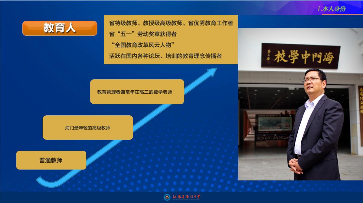 主讲嘉宾石鑫校长现为中学特级教师,教授级高级教师,1979年9月至1983年7月曾在我校数学系学习,现任海门中学党委书记、校长,曾先后获得了中国教育改革风云人物、江苏省五一劳动奖章、江苏省教育工作先进个人、海门市教书育人楷模、海门市“十佳青年”等荣誉,两次被评为海门市优秀知识分子,连续多年被评为海门市先进工作者,连续六年被评为学校优秀共产党员。