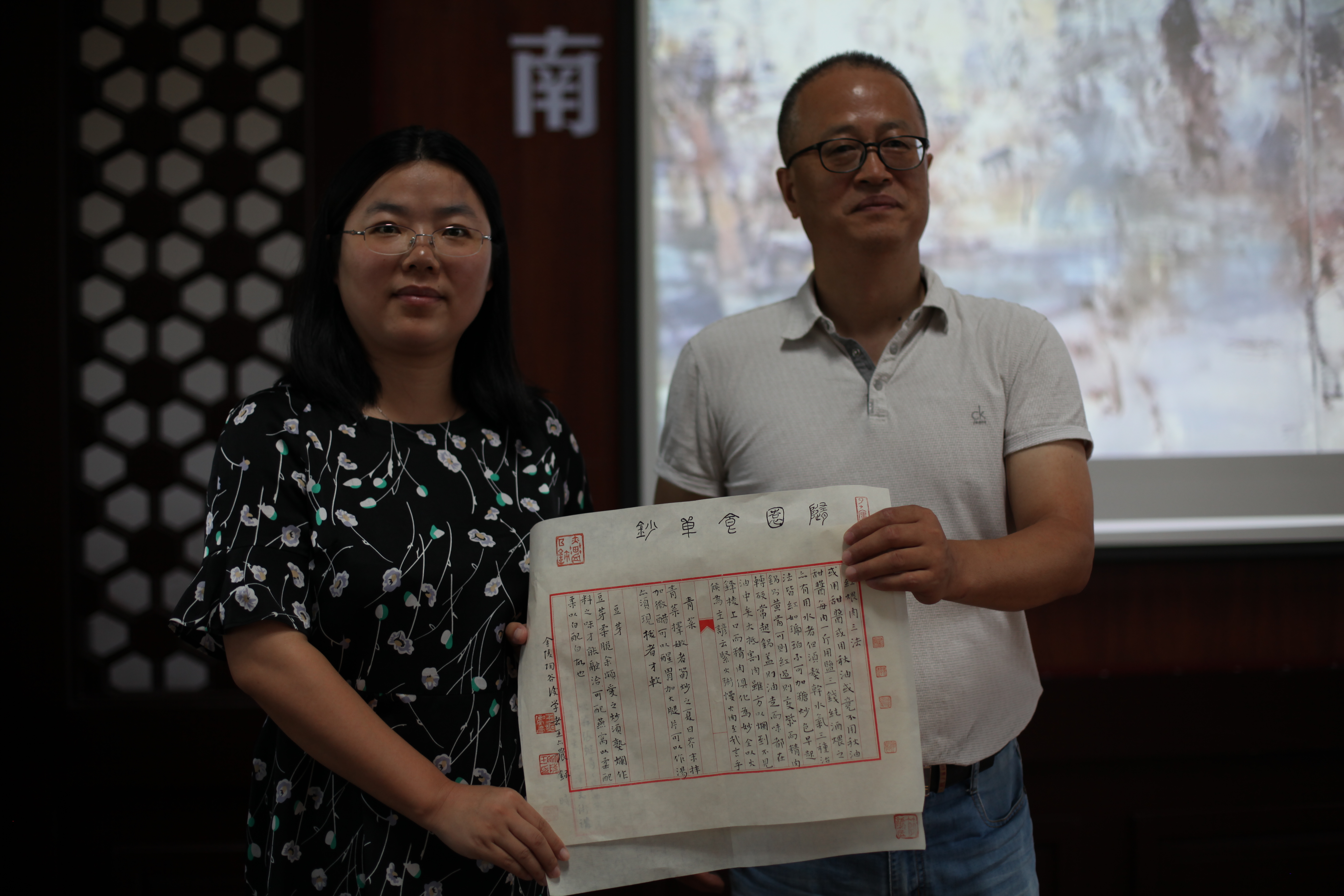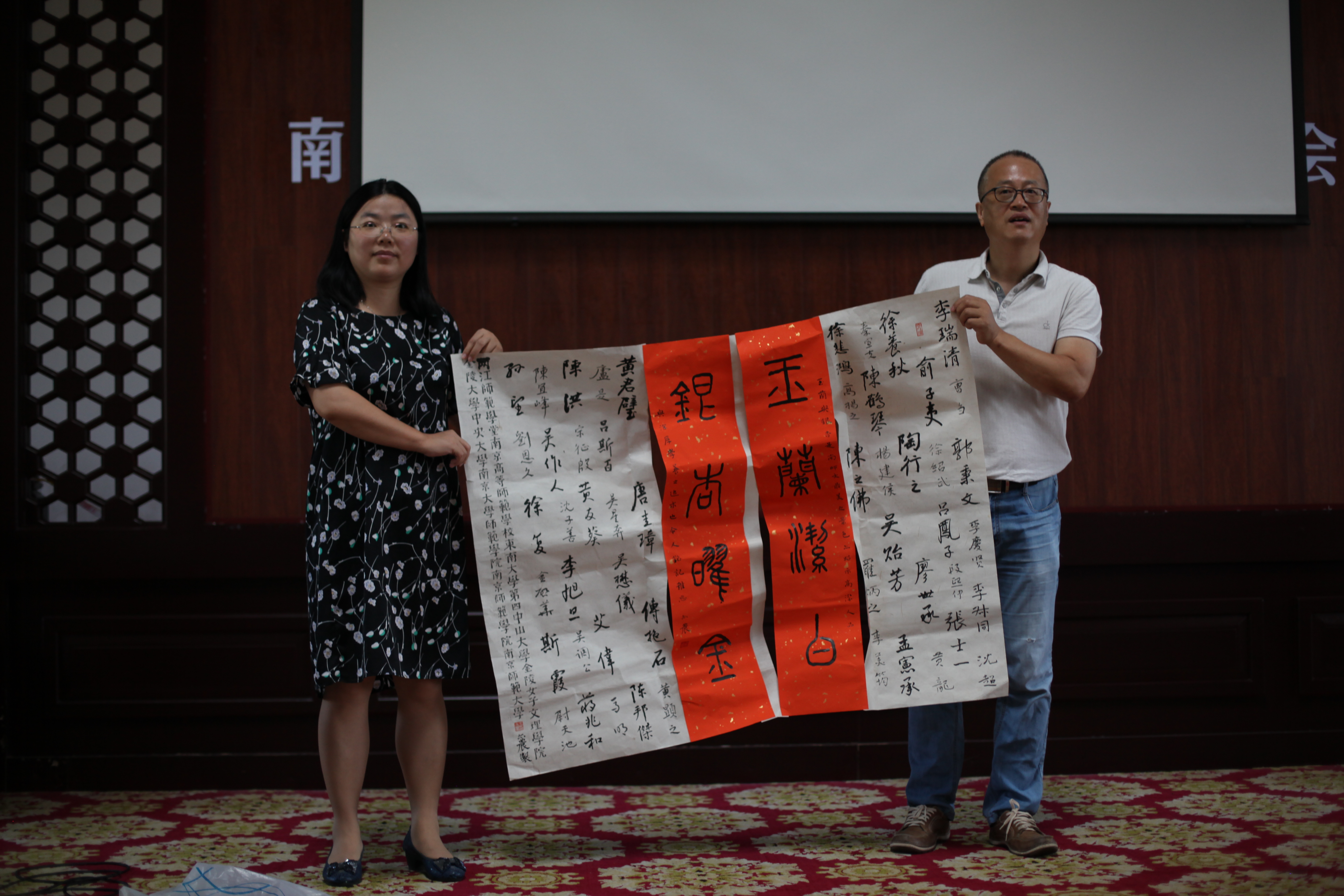 参加会议的任课老师尽管大都年过八旬,但依旧童颜鹤发、思维清晰。他们没有讲专业,而是与同学们阐述人生和幸福的意义。吕炳寿、徐海宁、周兴和、李乐群等老师纷纷发言回顾了南京师范大学的发展历程,深情回忆了79级校友们当年学习生活的许多往事,共叙师生情谊。各班校友代表逐一做了热情发言,汇报了各自毕业后的工作和生活情况,感谢母校领导和老师当年的谆谆教诲,感谢母校的精心培养培养,为学校和学院的蓬勃发展感到非常欣慰,为再次聆听老师们的教诲感到无比激动,表示愿意为母校发展尽绵薄之力。79级优秀校友、著名书法家王亦农向学院捐赠了书法作品,赵静亚书记代表学院接受捐赠,并代表学院热烈欢迎校友们回母校聚会。她介绍了学院在学科建设、科学研究、人才培养、社会服务等方面取得的骄人成绩。她表示,学院发展离不开校友们的关心和支持,希望校友们常回母校相聚相叙,积极为学院发展建言献策,增添新的动力。