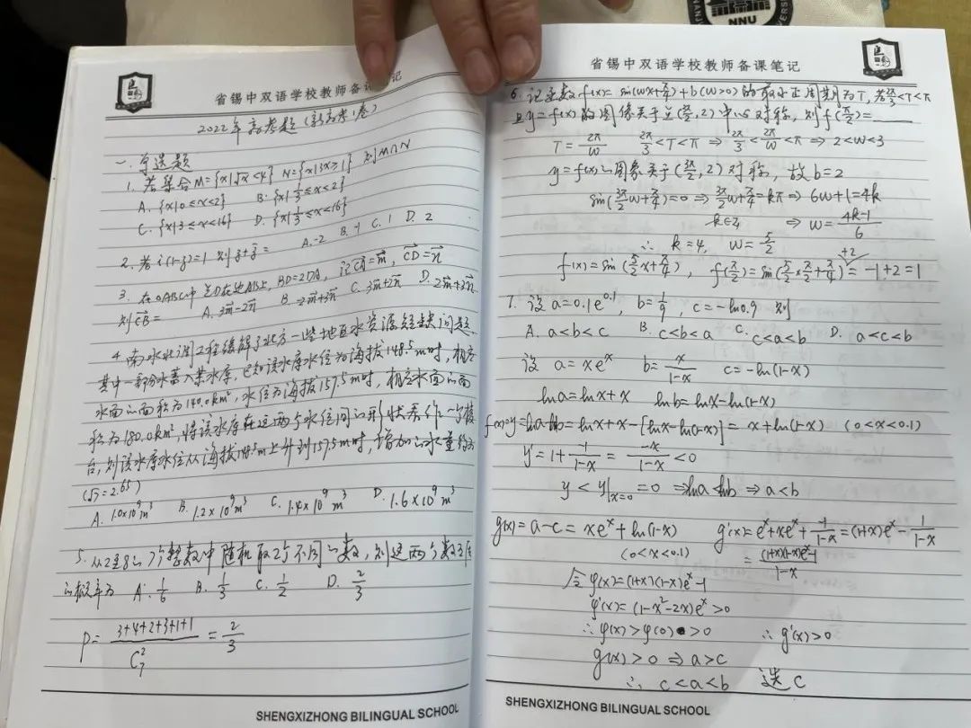数学老师必须不断加强基本功,保持对数学的敏感度。钱老师向我们展示了一本厚实的笔记本,每一页都写满了各类大型考试的题目、解答、方法。无论是否身处教学一线,研究数学教学改革趋势、高考动向等都是他必做之事。