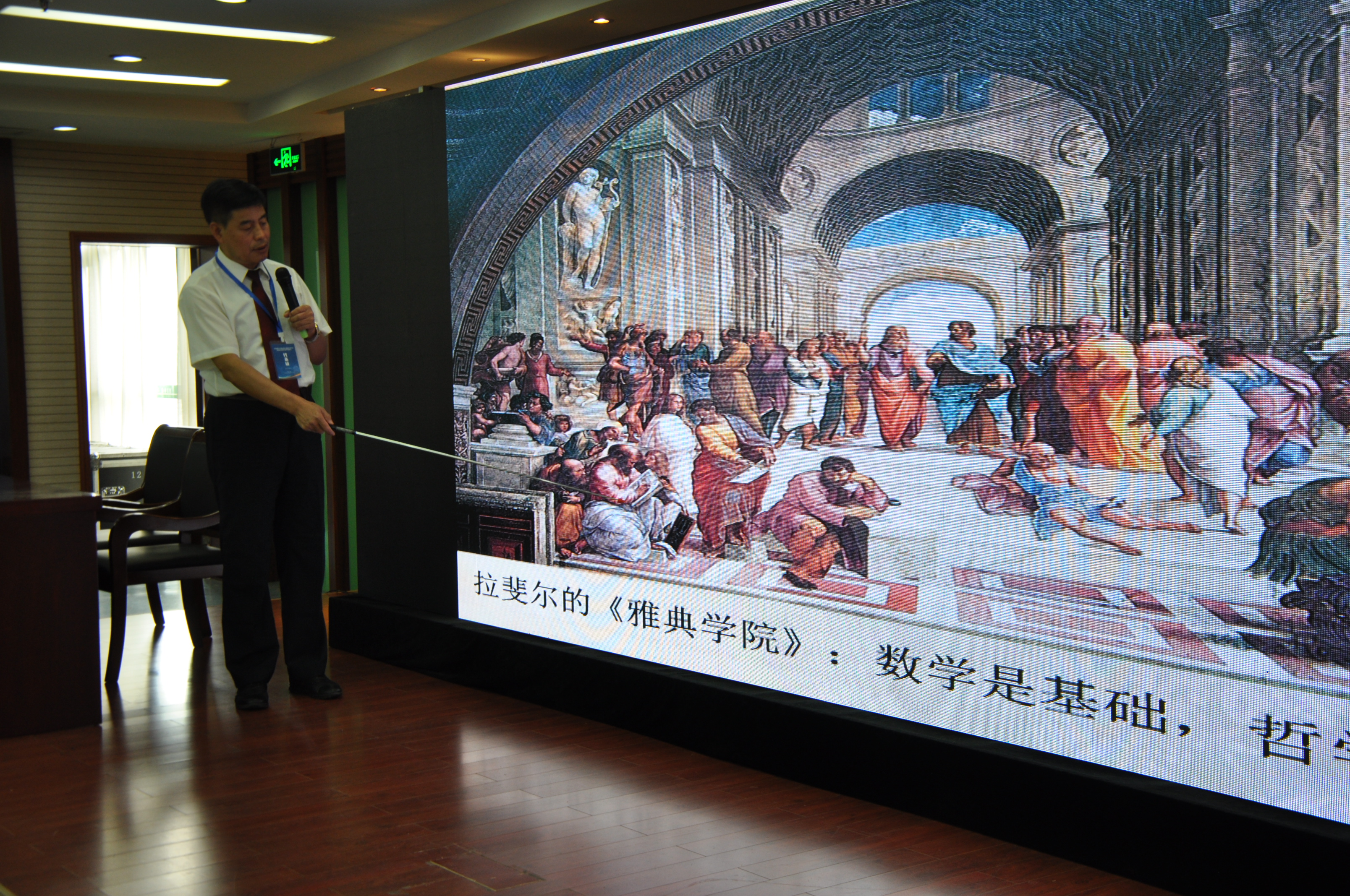 成立大会后,首届江苏省数学教育学术研讨会如期举行。南京师范大学涂荣豹教授以《教学生学会思考是数学教学的根本》为题,提出“发展学生的认识力是教育的最终目标”;浙江师范大学张维忠教授的《基于问题链的数学教师专业成长研究》阐述了基于问题链的数学教师专业发展;内蒙古师范大学代钦教授做了题为《艺术家的数学文化智慧——以拉菲尔的“雅典学院”为中心》的专题报告,强调了探索数学文化的重要性;华东师范大学汪晓勤教授带来的《从历史到课堂:HPM视角下的课例研究》,例举了一系列课堂实证研究过程;江苏省教研室李善良教授做了《教科书:从“教材”到“学材”》的专题报告;南京师范大学喻平教授所做的《当前数学教育研究应当关注的几个问题》,着重指出了培养数学学习中的核心素养的重要性。六场数学教育专家报告视野宽广,内容丰富,观点鲜明,精彩纷呈,与会代表们纷纷感到如沐春风,受益匪浅。