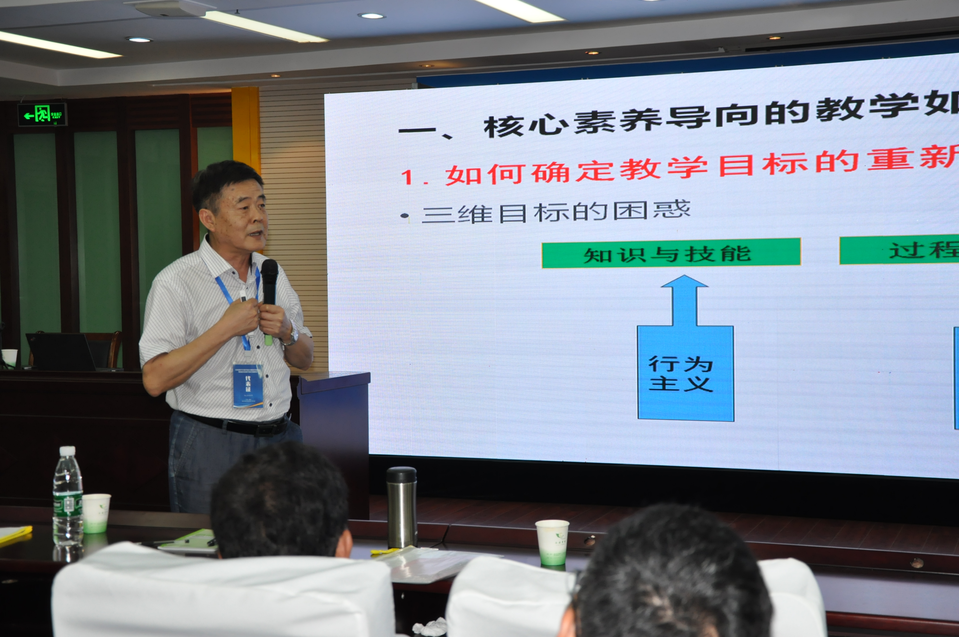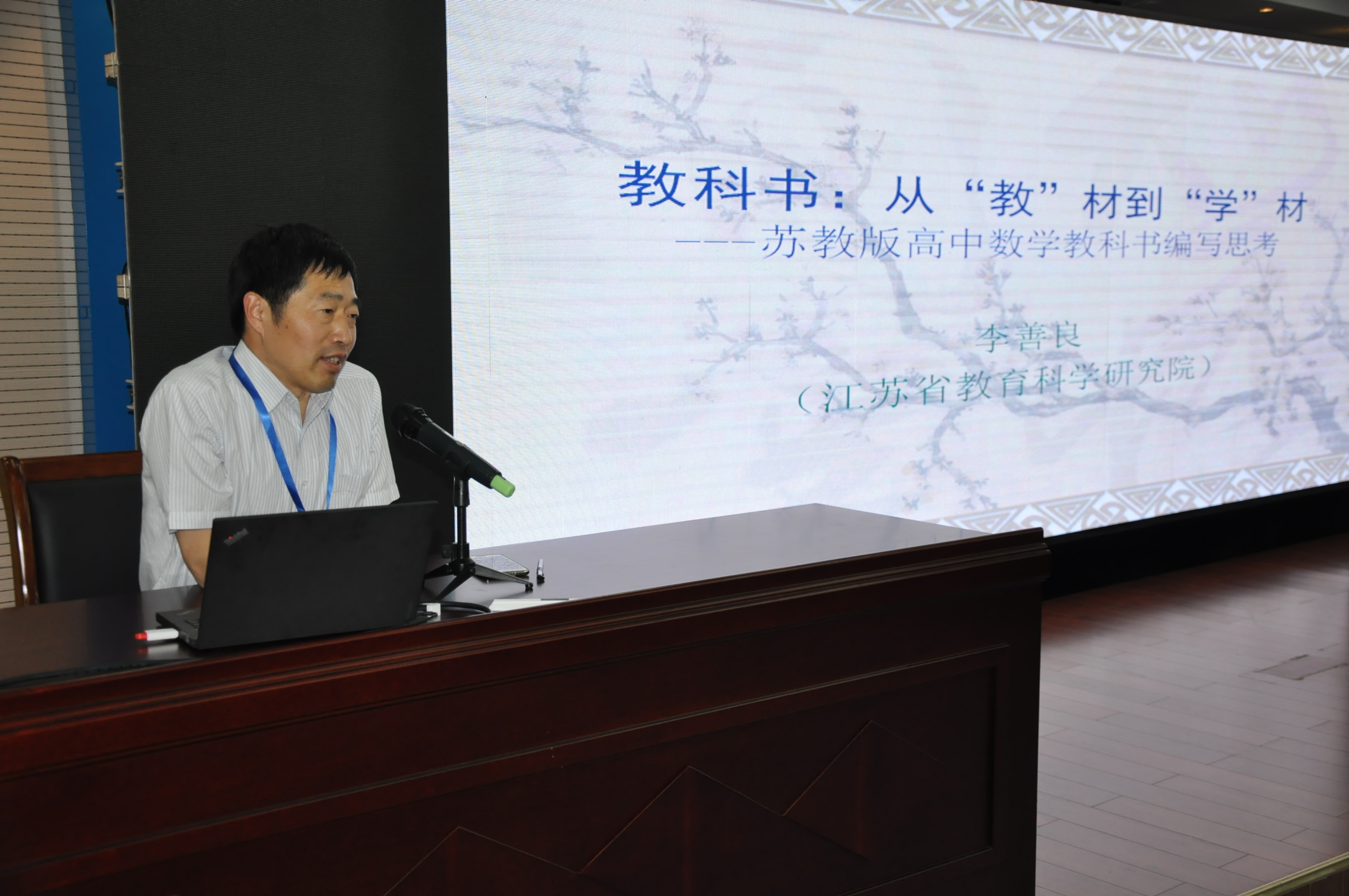 全国数学教育专业委员会秘书长代钦教授致辞,对专业委员会成立表示热烈祝贺,他回顾了江苏省数学教育发展史上的重要事件和一些知名数学教育家的卓越成就,对江苏省数学教育的发展给予了高度肯定和赞扬。期望江苏数学教育专业委员会的成立,将推动数学教育实践和研究取得更加辉煌的成绩,也为全国数学教育界树立一个学习的楷模!