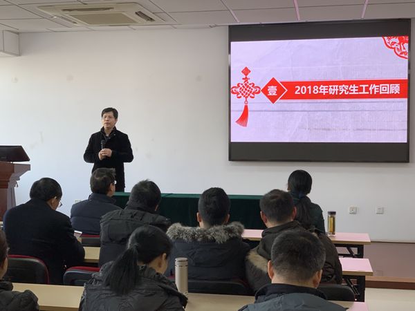 研究生的生源质量正在稳步提高,近年来招生报录比逐年递增;研究生培养激励政策日益完善,为优秀学子提供了良好的学习条件和学习资源;博士生、硕士生的培养规模和质量明显提高,发表论文的学术水平大幅提升;毕业生就业前景广阔,就业率居于学校首位。此外,他还简要陈述了学院2019年研究生教育培养的工作计划。