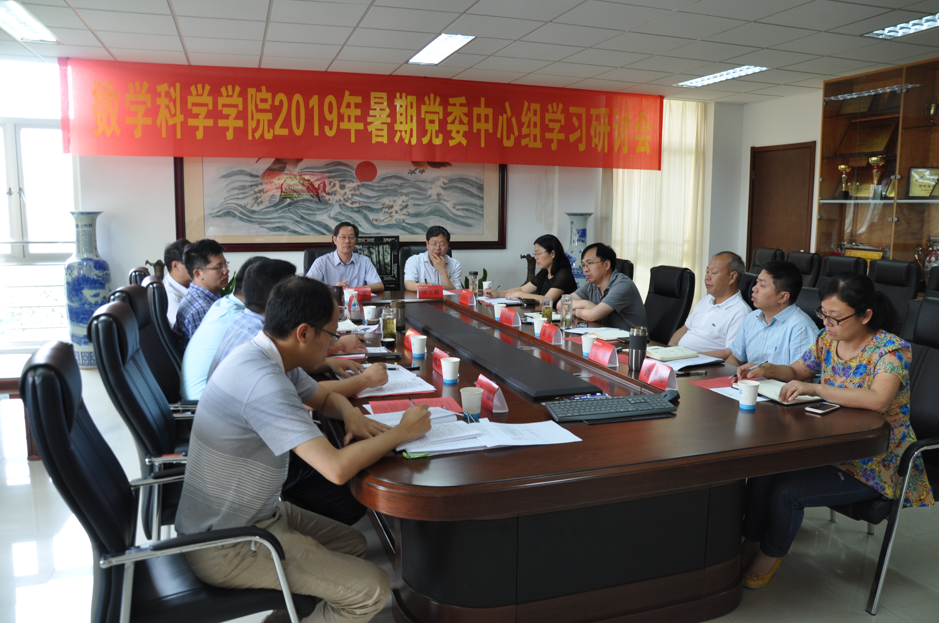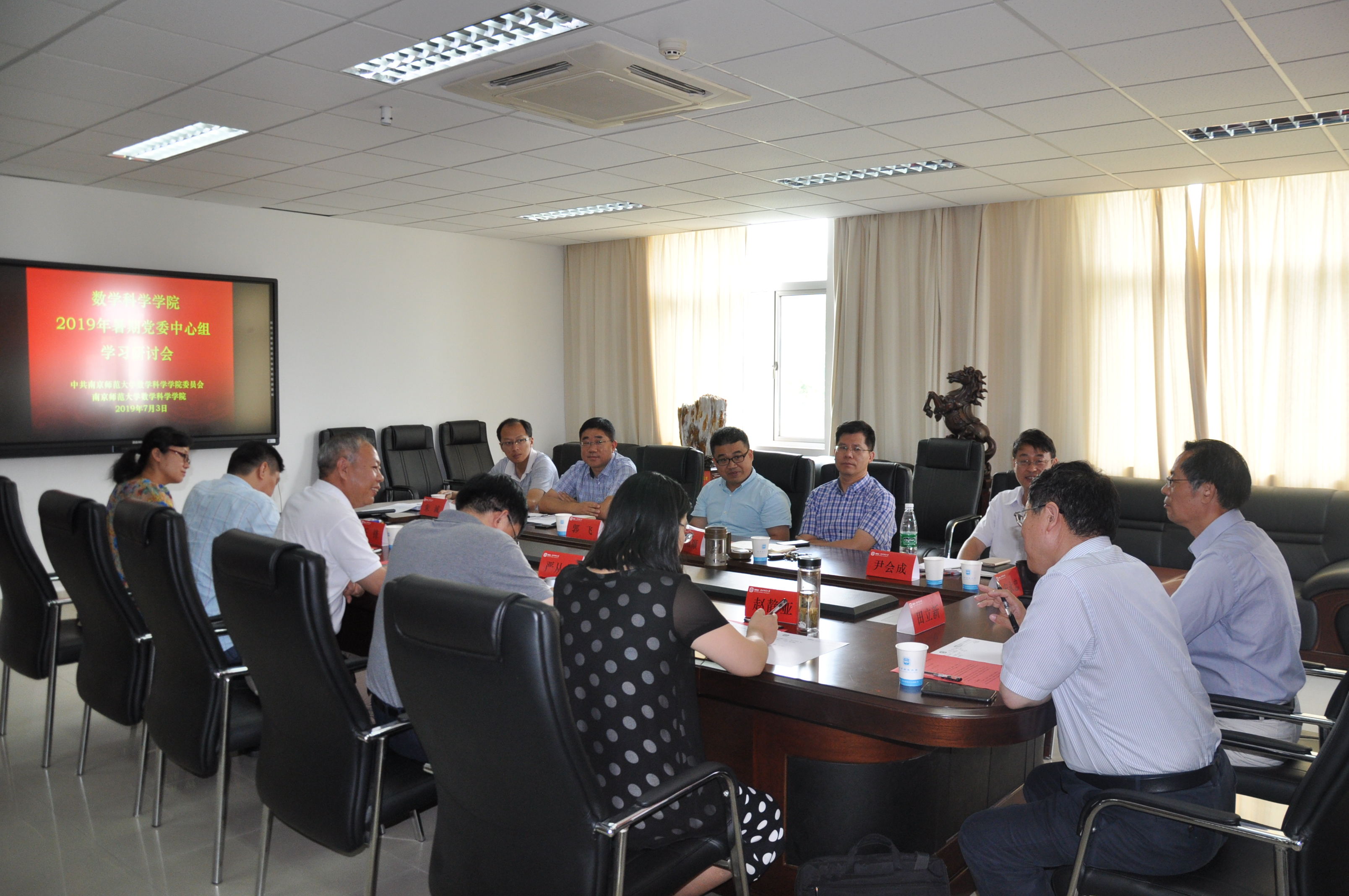 7月3日,数科院2019年暑期党委中心组学习研讨会在南京师范大学仙林校区举行。院长尹会成、院党委书记赵静亚等全体党政联席会成员参加了本次学习研讨。南京师范大学原党委书记、校长宋永忠教授,校党委常委、副校长田立新教授应邀出席会议。会议由院党委书记赵静亚主持。