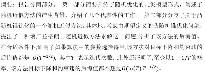 报告人简介:张立卫于1989年,1992年,1998年分别在大连理工大学获得理学学士,硕士,博士学位,1999-2001在中科院计算数学所从事博士后工作。目前的研究兴趣是“矩阵优化”,“随机规划”和“均衡优化”。他目前主持一项国家重点研发计划课题和一项国家自然科学基金面上项目,完成面上基金多项,重点基金子课题两项。在国际顶级期刊Math. Programming, Operations Research, SIAM J. Optimization, Mathematics of Operations Research, Mathematics of Computation, Informs Journal on Computing,JMLR发表论文十多篇。曾任中国运筹学会常务理事,中国运筹学会数学规划分会副理事长,金融工程与金融风险管理分会副理事长。现任中国运筹学会监事会监事, 《APJOR》,《NACO》和《运筹学学报》编委。2020年获得中国运筹学会运筹研究奖。