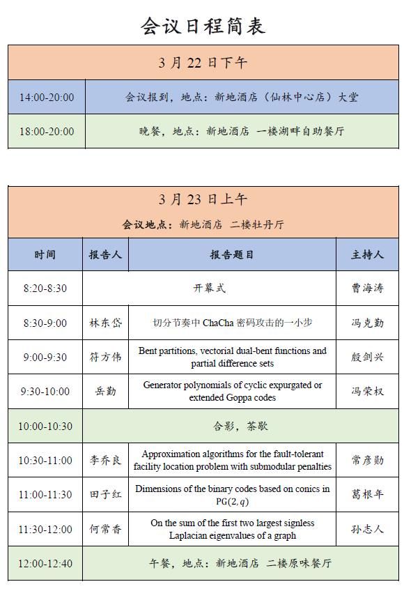 附会议手册:“组合数学及相关信息理论”研讨会会议手册