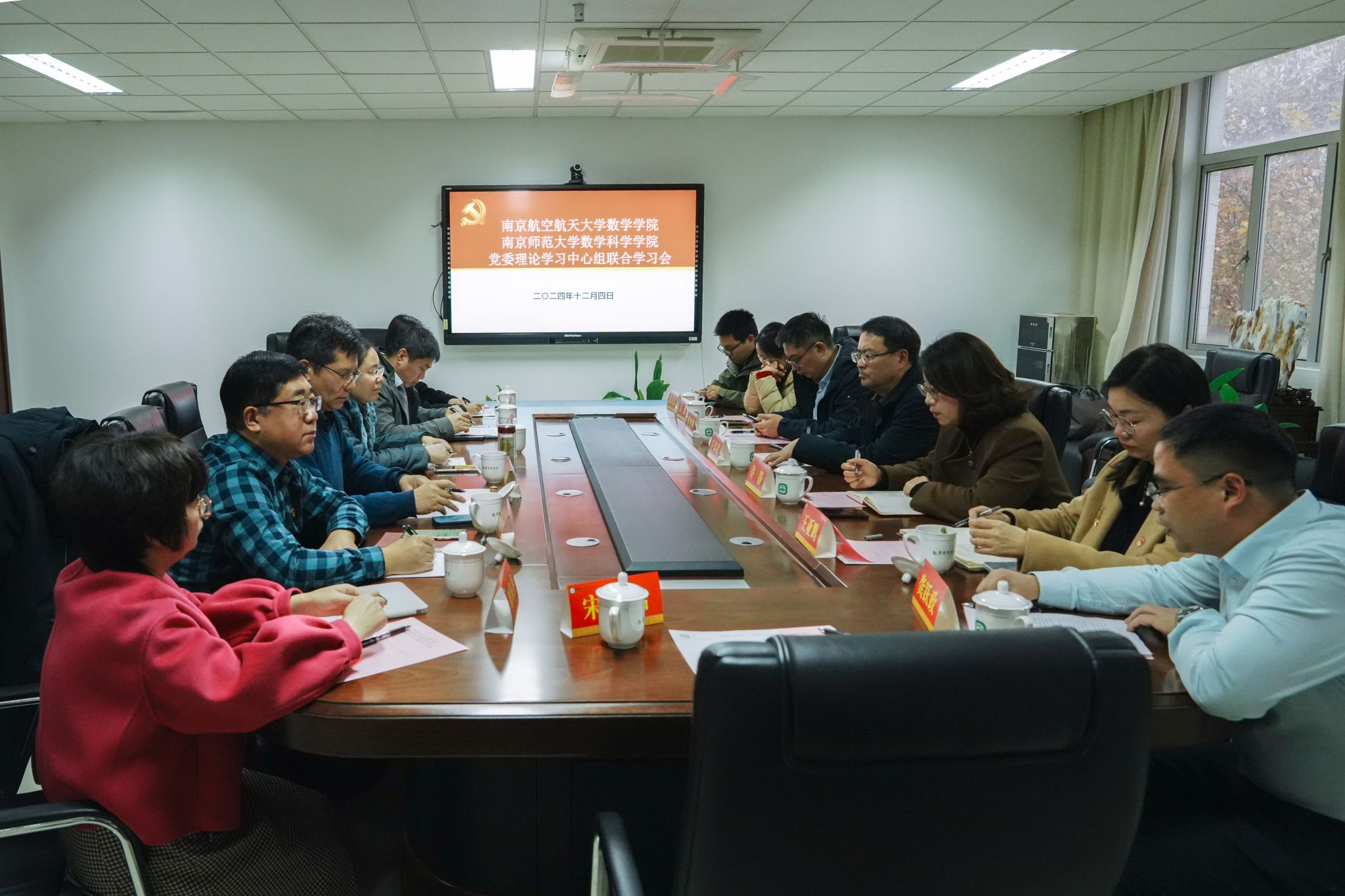 124日下午,网赌 与南京航空航天大学数学学院开展党委理论学习中心组联合学习会,并签署党建共建协议。学校党委常委、宣传部部长宋喆和双方党政班子成员参加会议,网赌 党委书记王雨顺主持会议。