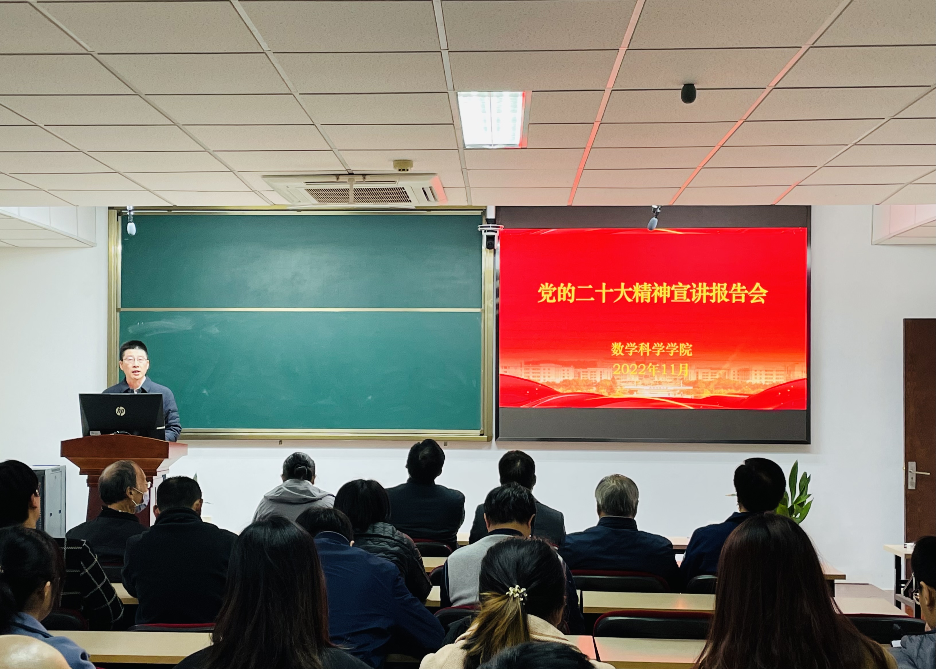 徐剑波在报告会上传达了学校学习宣传贯彻党的二十大精神专题部署会的会议精神和具体要求。同时指出,学习宣传贯彻党的二十大精神是当前和今后一个时期全党全国的首要政治任务,学院各级党组织、各教研室、全体师生员工都要以更高的政治站位和政治自觉,根据学校学习宣传贯彻党的二十大精神工作方案的要求,持续深入推进学习,充分认识学习宣传贯彻党的二十大精神的重大意义,把学习宣传贯彻党的二十大精神和全面贯彻落实学校第十七次党代会精神有机结合,把二十大精神落实到学院工作的各个方面,聚焦高质量发展,建设“最好的南师”,为学校和学院事业发展贡献数科院人的智慧和力量。