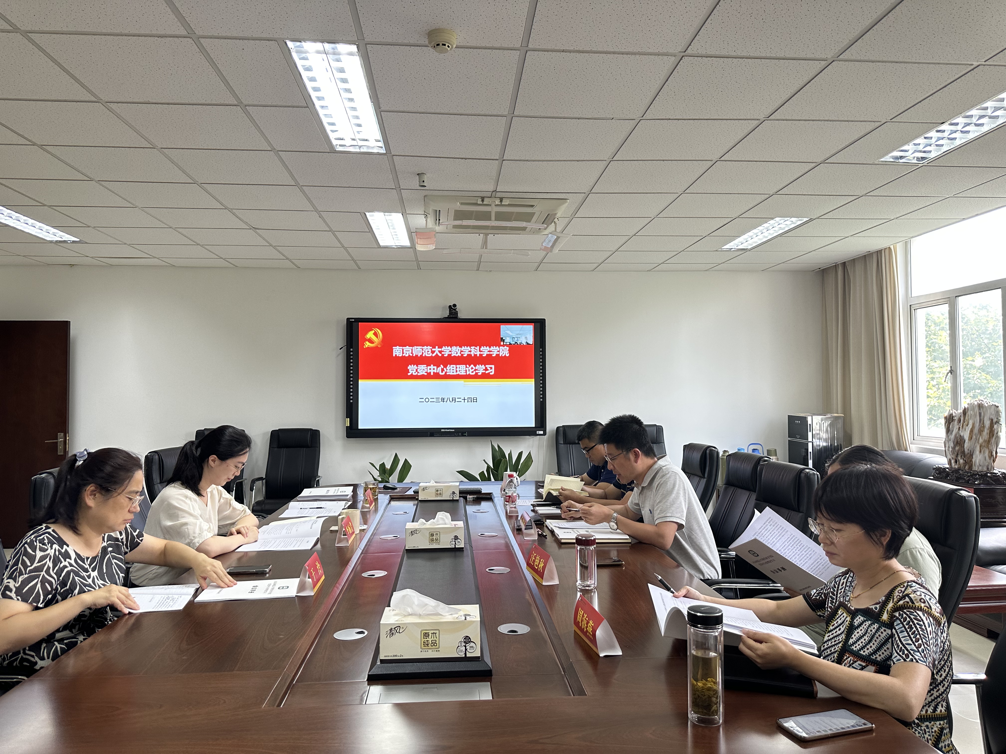 8月24日下午,数科院党委理论学习中心组在南师大仙林校区行健楼544会议室组织专题学习,深入学习领会习近平总书记关于党的建设的重要思想,学习习近平总书记关于严肃党内政治生活的重要讲话和重要指示批示精神,学习习近平总书记关于以学铸魂、以学增智、以学正风、以学促干等重要论述,学习习近平总书记关于江苏关于教育的重要讲话和重要指示批示精神,学习党章、新形势下党内政治生活的若干准则、县以上党和国家机关党员领导干部民主生活会若干规定等党内法规。学院全体党政班子成员和部分教师代表参加专题学习。专题学习会由学院党委书记徐剑波主持。