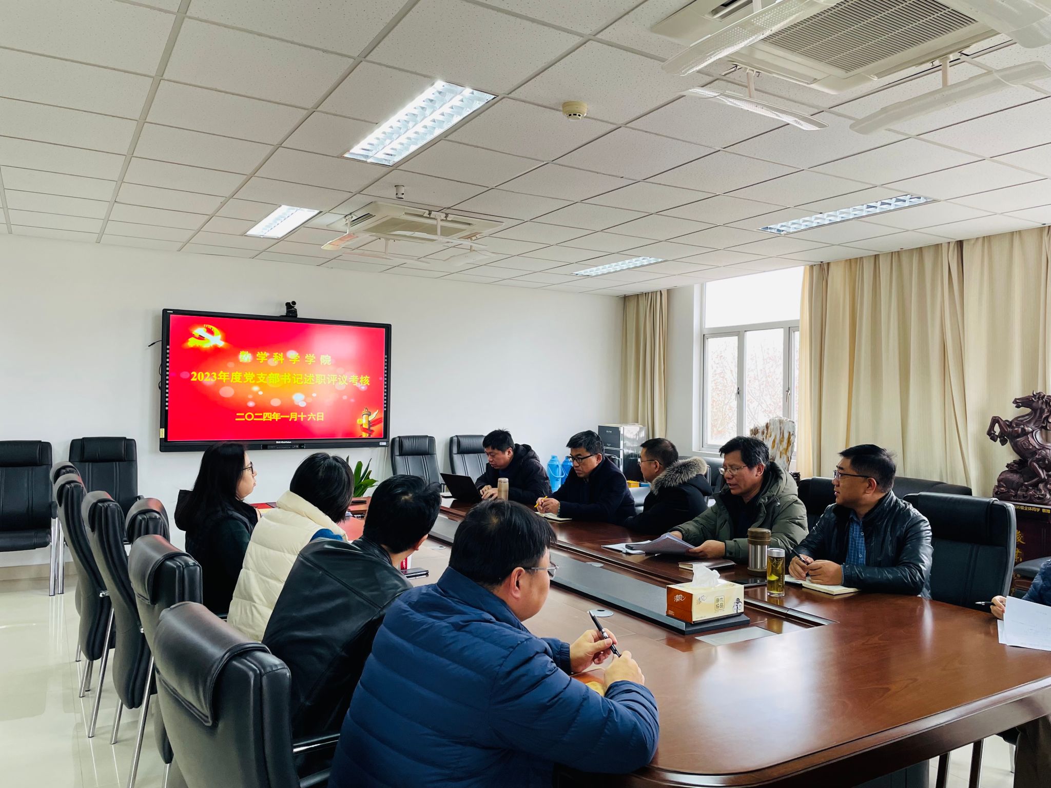 2023116日下午,数科院党委在行健楼544会议室召开2023年度教职工党支部书记抓基层党建述职评议考核会议。会议由学院党委书记王雨顺同志主持。学院全体党委委员和教职工党支部书记参会。