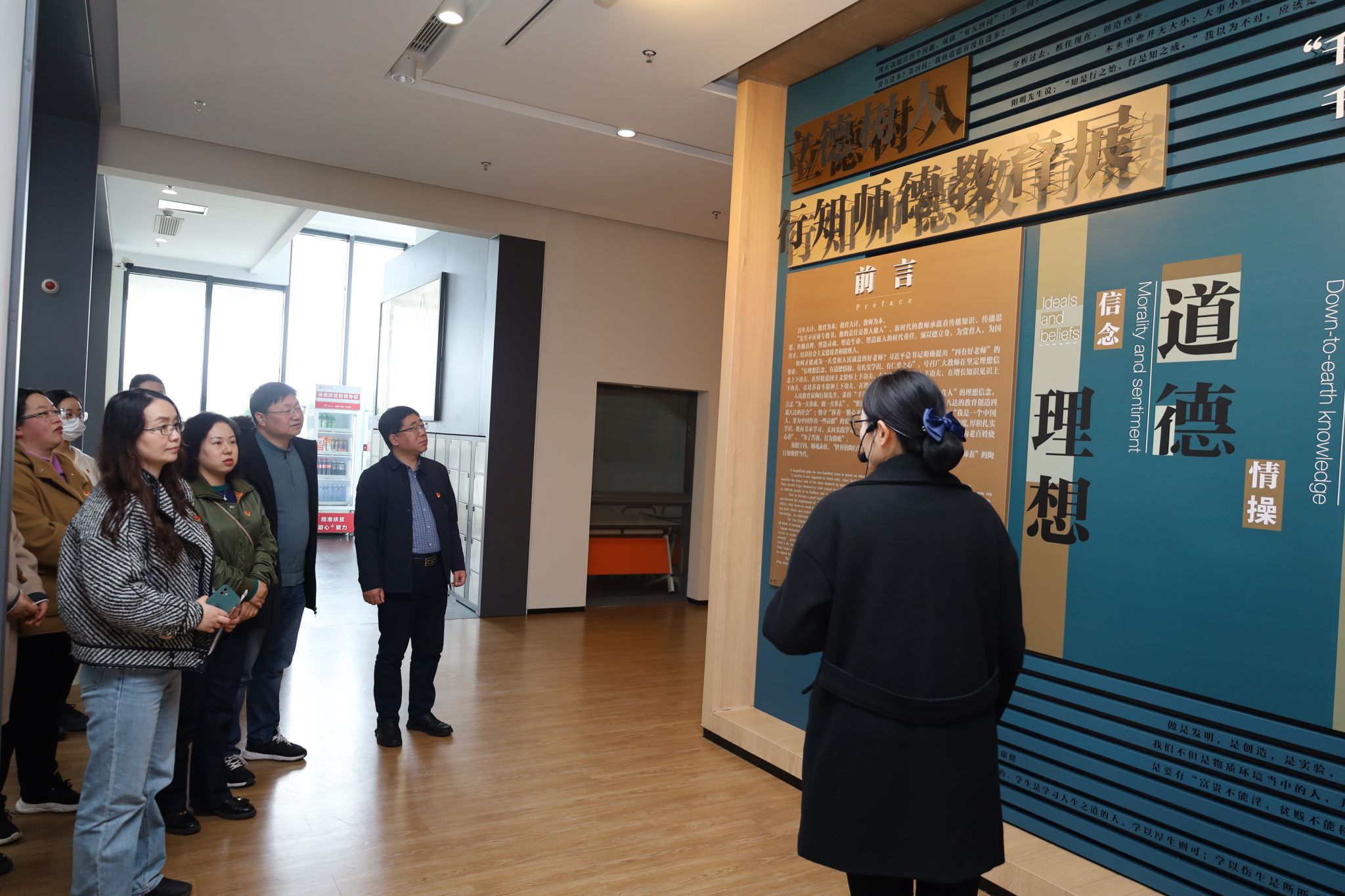 支部成员们集中参观了师德教育馆,了解学习陶行知先生的生平及教育思想,对于教育的意义有了更深的感悟。师德教育馆以“四有好老师”为设计思路,以陶行知的教育理论和教育实践为素材,展示陶行知教育思想与实践在当代的师德教育价值。