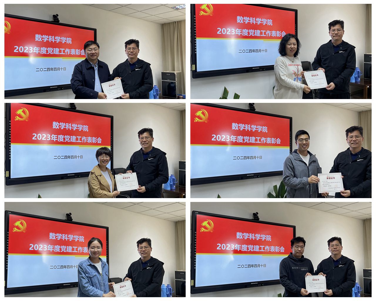 2023年度,经党支部推荐,学院党委评选,教职工第四党支部荣获“党建工作优秀奖”,教职工第一党支部荣获“党建工作推进奖”,葛羽佳、周海燕、蔡文君、许刚、常虹等五位同志荣获“党建工作先进个人”称号。