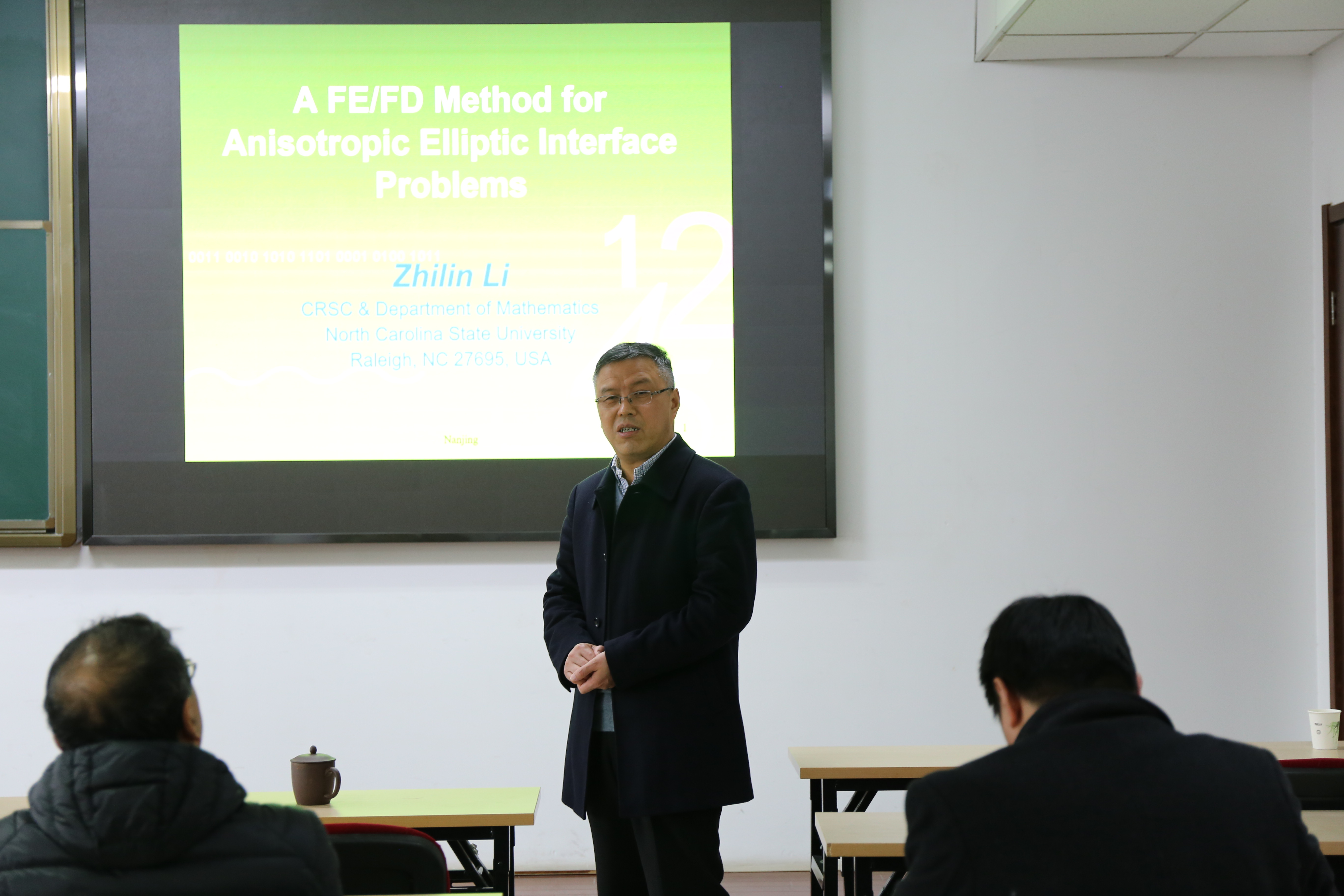 作学术报告。报告由实验室副主任陈金如教授主持。实验室成员汪艳秋教授、张志跃教授、王锋副教授、蔡文君副教授以及计算数学专业和应用数学专业的部分学生参加了本次报告。