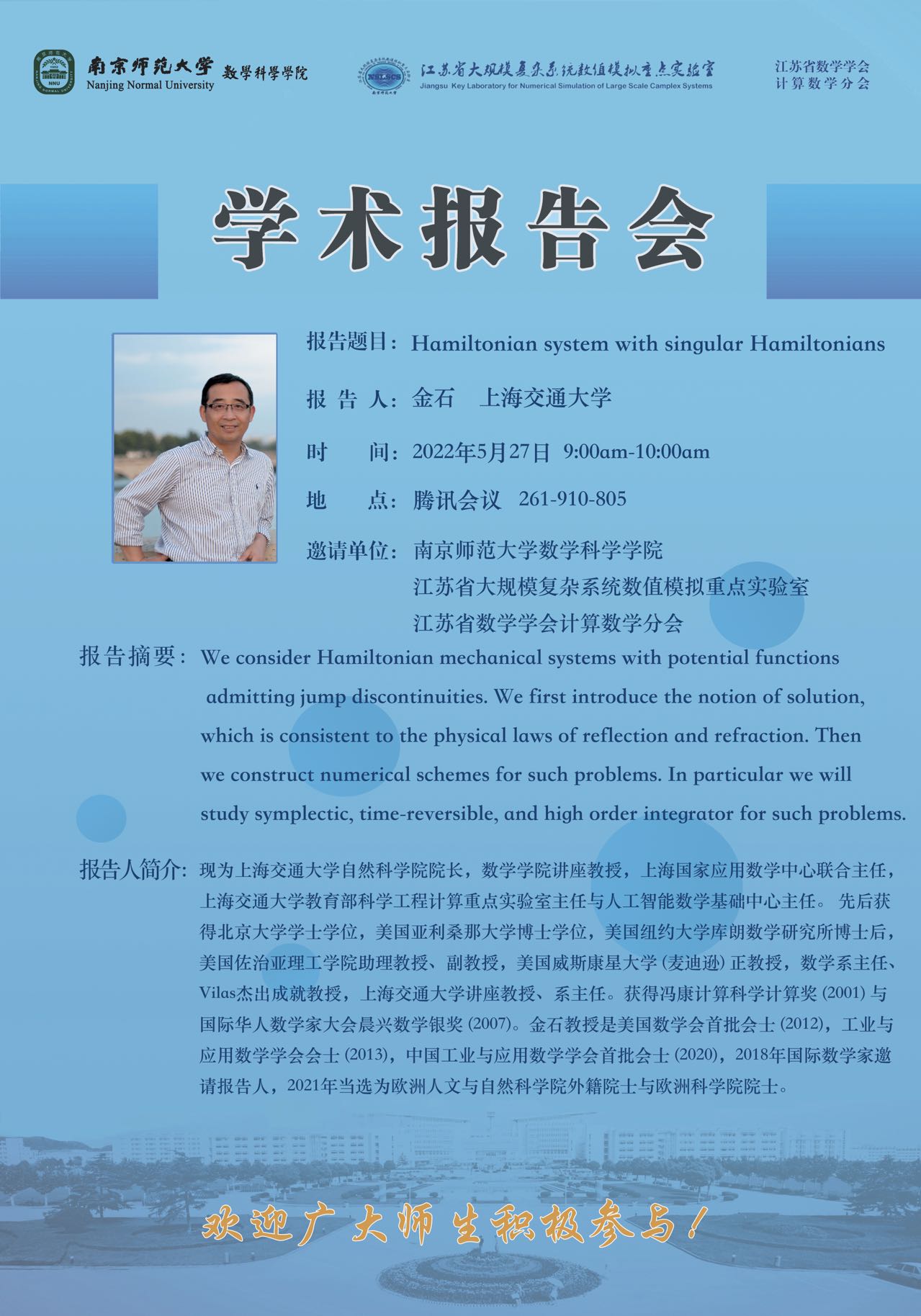 实验室专题报告通知:Hamiltonian system with singular Hamiltonians