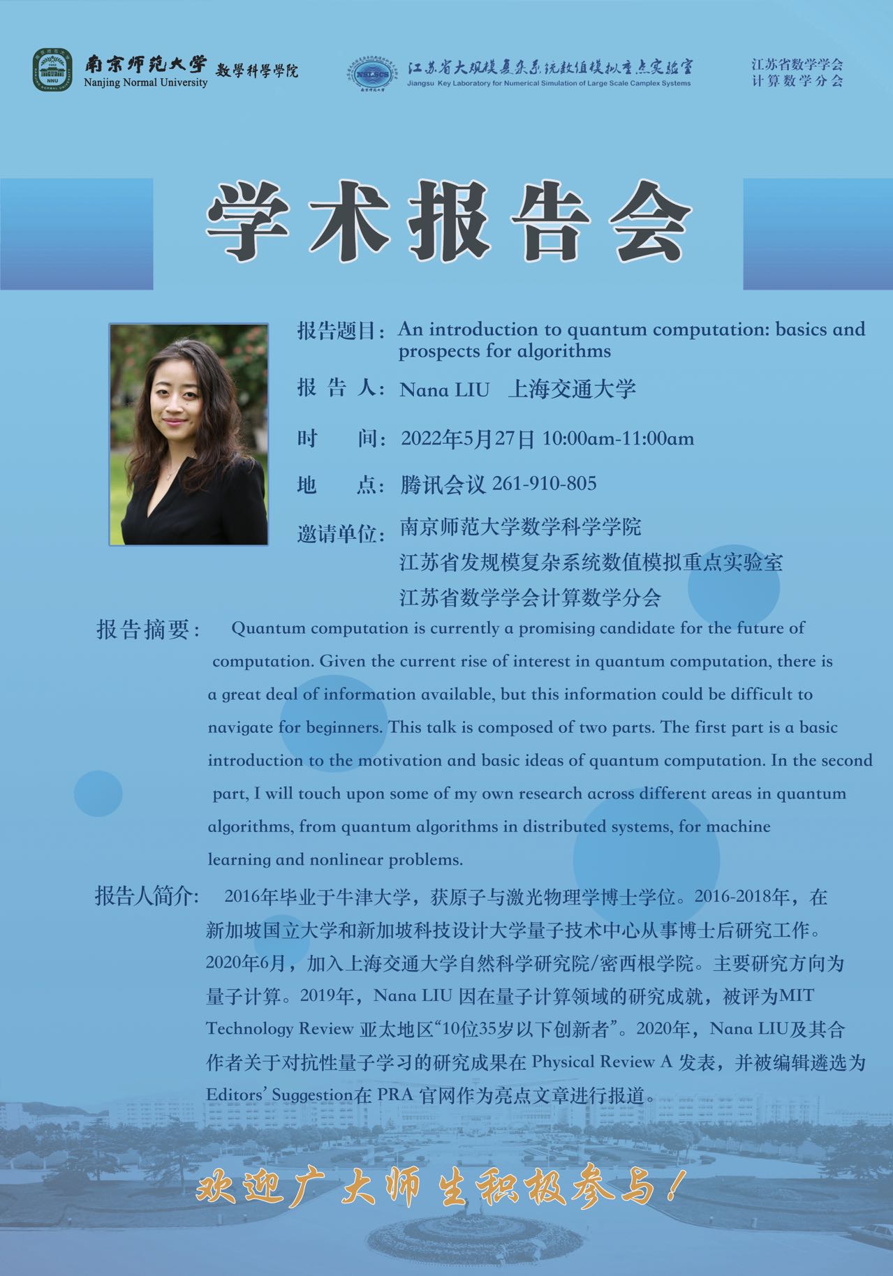 实验室专题报告通知:An introduction to quantum computation: basics and prospects for algorithms