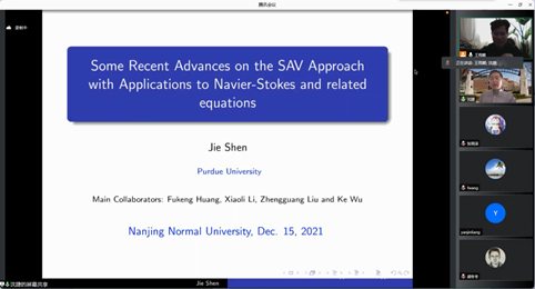 12月15日上午,应我校数科院王雨顺教授邀请,美国普渡大学数学系沈捷教授作了题为“Some Recent Advances on the SAV Approach with Applications to Navier-Stokes and related equations”的线上学术报告(腾讯会议)。本次报告由王雨顺教授主持,来自数科院以及其他高校计算数学专业的部分老师和研究生参加了本次报告。