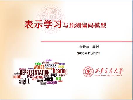 的邀请,西安交通大学数学与统计学院张讲社教授于2020年11月23日上午在行健楼526教室做了题为“表示学习与预测编码模型”的学术报告。南京师范大学副校长田立新教授主持了此次报告会。数科院统计与金融数学研究室解锋昌教授、刘国祥教授、高启兵教授、周秀轻教授、杜秀丽副教授、姚奕副教授、许晓明副教授,李启才副教授、米辉副教授、殷荣城副教授、孙源博士,概率论与数理统计专业部分研究生参加了此次报告会。