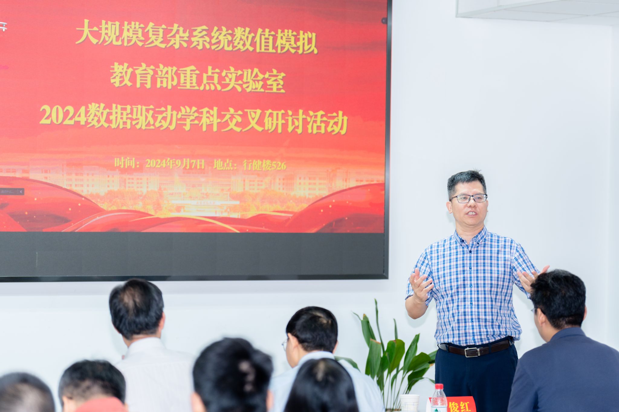 宋永忠代表实验室对参加本次活动的专家和领导表示了欢迎。他简单介绍了实验室学科交叉融合的历史渊源以及学校对于学科交叉一贯重视的政策措施,并给出了三点看法。首先,他认为学科交叉融合是大势所趋,当今社会人类所面临的前沿科学问题、社会发展问题以及全球性挑战日趋多样性与复杂化,我们必须通过搭建跨学科交流平台,打破学科壁垒,促进多个领域的深度融合,形成新的学科交叉点和研究领域;其次,他说大规模复杂系统数值模拟教育部重点实验室就是随着学科交叉而不断发展壮大的,本次活动可以进一步探讨寻求更多的学科交叉切入点,拓宽实验室研究领域;第三,他指出学科交叉融合要因地制宜,学科交叉是动态的过程,需要不断地调整优化,找到合适的纽带。他最后强调学科交叉融合需要实质性的融合,真正解决社会实际问题,推动科学研究创新发展。