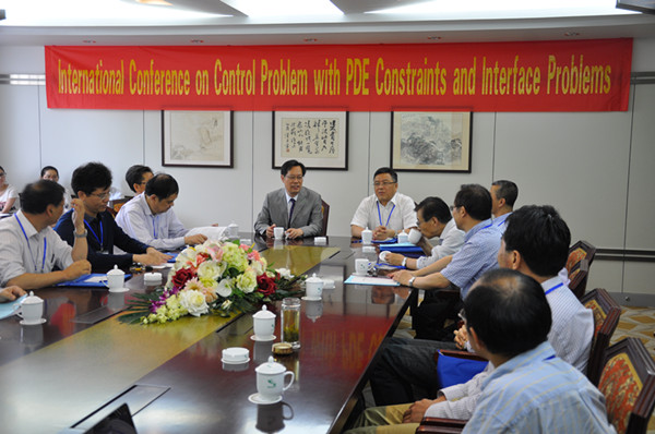 在科学研究、学科建设和人才培养等方面所取得的显著成绩。宋书记指出PDE约束控制和界面问题是计算数学领域的重要分支之一,在实际工程中有着广泛的应用,会议的成功召开对于促进学校学科的发展,拓展国际学术视野,增进我校在该领域的国际学术交流与合作,进一步提升在该领域的研究水平具有重要的意义。