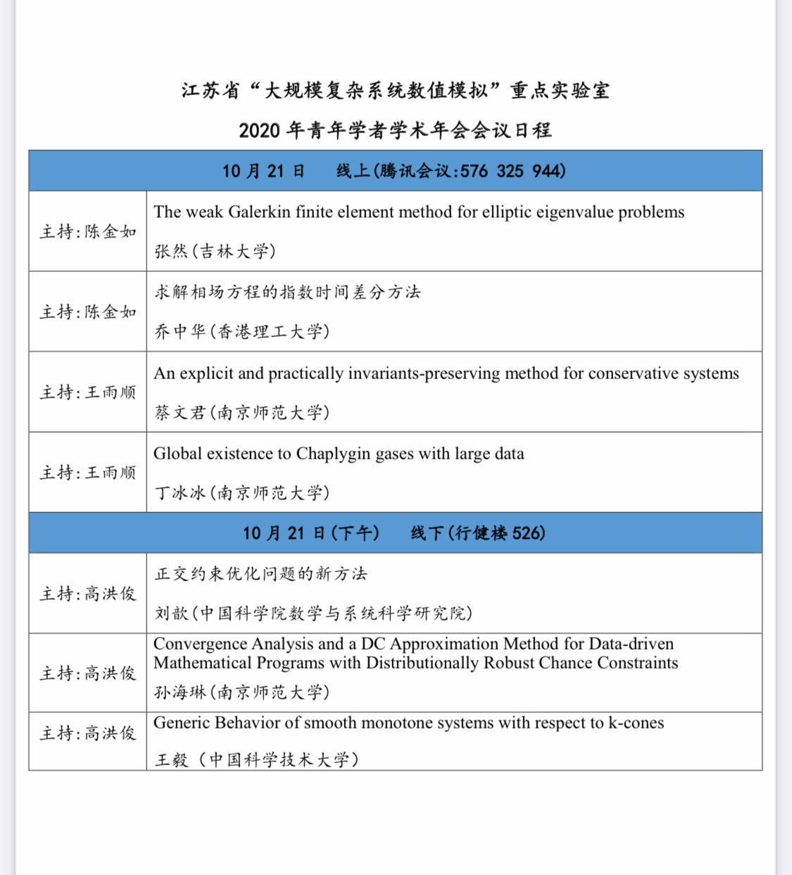 省重点实验室2020年青年学者学术会议
