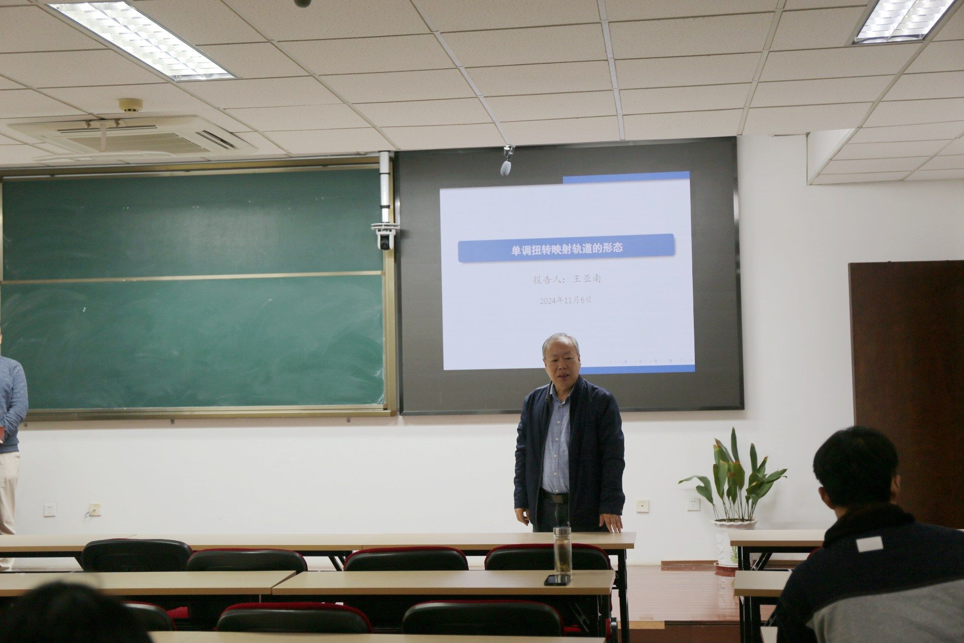 本学期第五场双周三学术报告会在行健楼学术活动室526举行。此次报告会主讲人是应用数学研究室的王亚南副教授,报告的题目是“单调扭转映射的轨道形态”,数学研究所副所长贺伟教授主持了本次报告会,部分研究生参加了本次报告会。