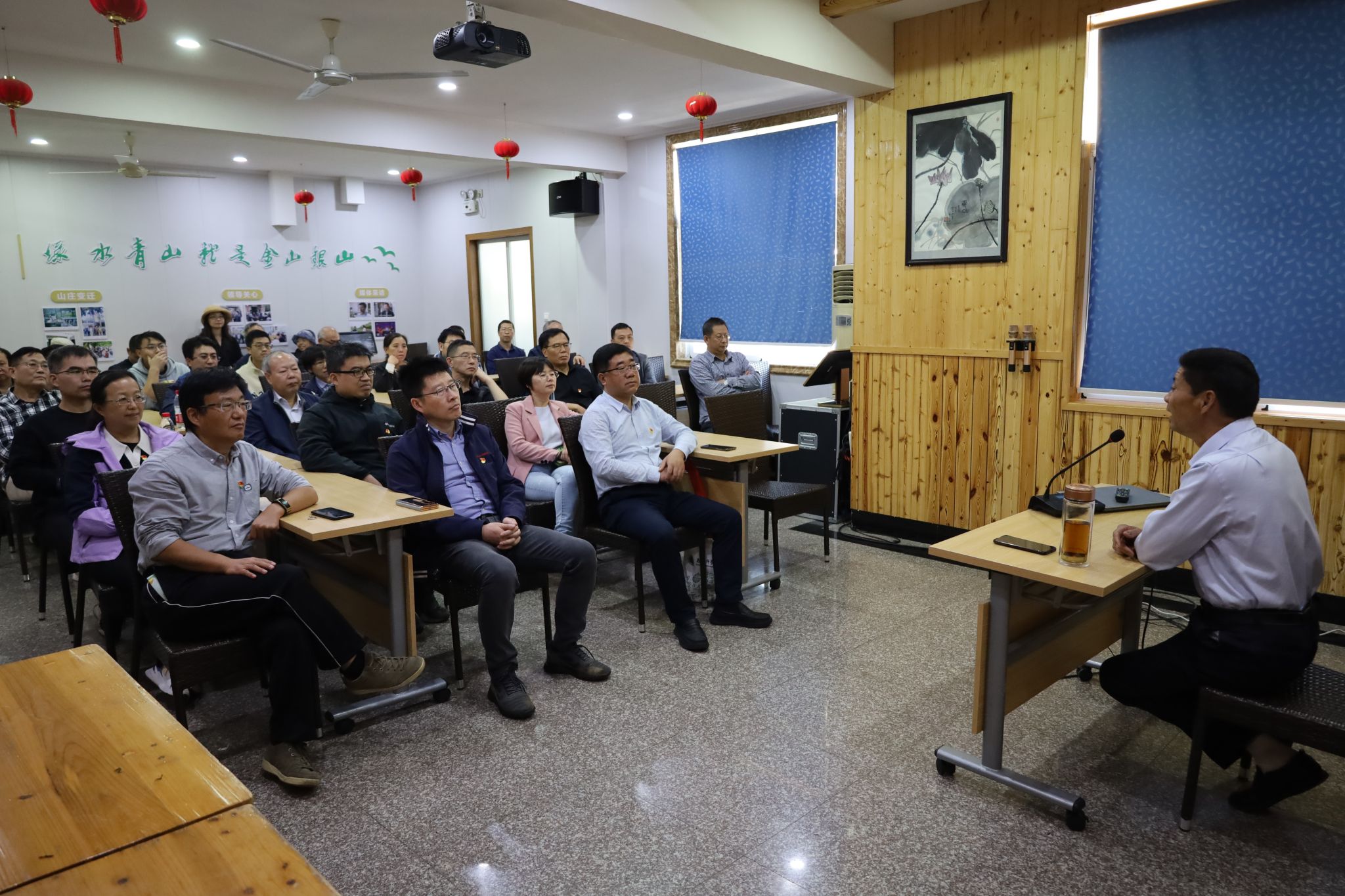 安吉县余村是“绿水青山就是金山银山”理论发源地,是浙江在美丽乡村建设过程中践行“两山”理论的缩影,也是浙江大地千万工程的缩影。十余年来,余村人坚持“创新、协调、绿色、开放、共享”发展理念,封山护水,关停全部矿山、水泥厂,大力发展生态旅游、生态农业,集中精力发展休闲旅游经济,从“靠山吃山”变成了“养山富山”,以生态建设助推美丽中国建设,以实际行动谱写了“绿水青山就是金山银山”的美丽赞歌。整个活动中,老师们沿着习近平总书记曾经走过的村道,参观了余村发展规划模型、“两山”理论纪念碑、观看了 “绿水青山就是金山银山”专题纪录片,并聆听了胡加仁老书记的专题讲座,深入了解了 “绿水青山就是金山银山”这一科学论断提出的背景、深刻的内涵以及余村人民积极践行这一理论的过程。