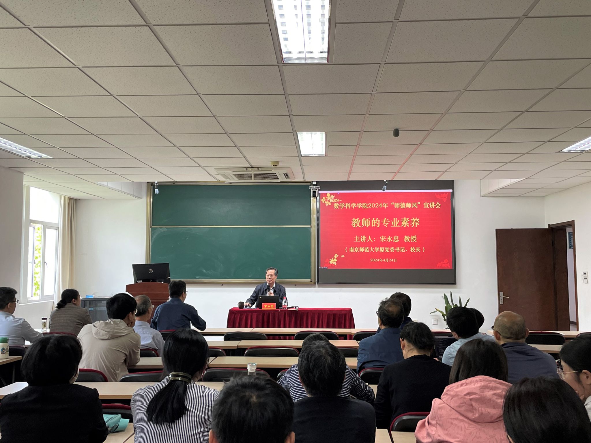 2024年春学期师德师风宣讲会在行健楼526室顺利举行。宣讲会特邀我校原党委书记、校长宋永忠教授作了题为“大学教师的专业素养”的专题报告。学院全体教职工参会。