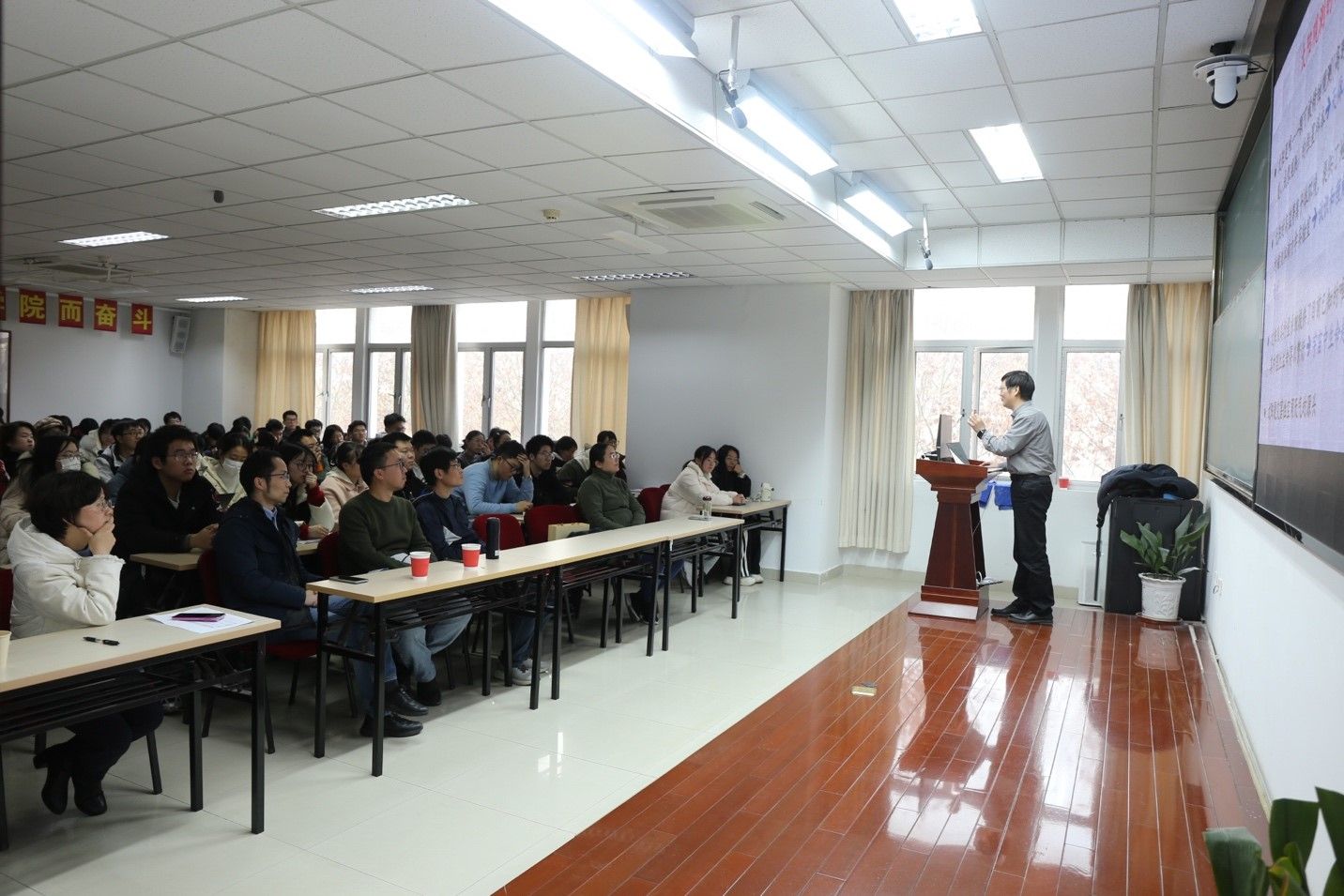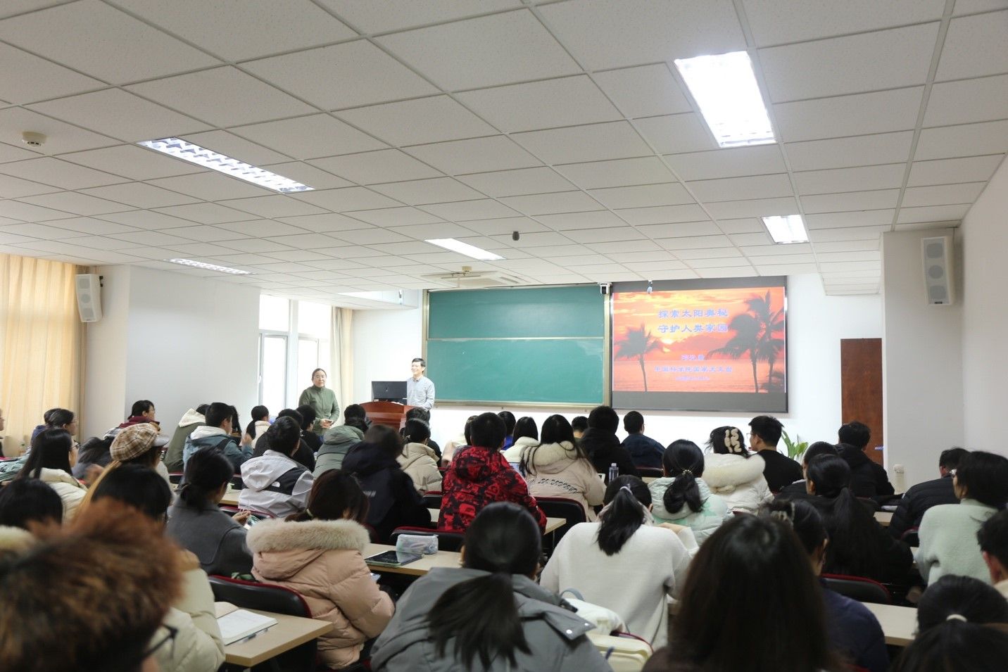 最后,邓元勇研究员特别做了国家天文台的招生宣传,鼓励数学与物理专业的优秀学生报考国家天文台的研究生,投身我国的天文事业。整场活动在师生们热烈的掌声中圆满结束。