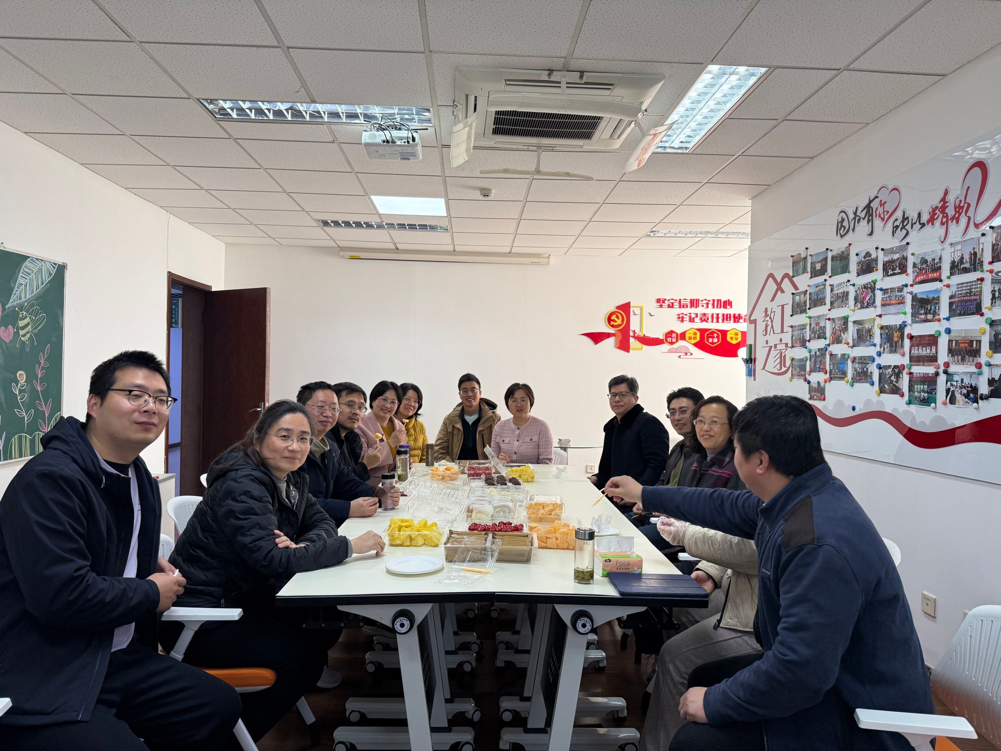 报告会结束之后,计算科学研究室老师们移步至行健楼601,一起享用研究室准备的下午茶,大家欢聚一堂,笑声与交谈声此起彼伏,空气中弥漫着浓厚的团队情谊与合作的默契。大家或围坐一起,分享着科研路上的点滴趣事;或两两交谈,深入探讨着学术难题的解决之道。这场在行健楼601举行的下午茶时光,不仅为计算科学研究室的成员们提供了一个放松身心的机会,更在无形中促进了团队间的交流与合作,为科研之路注入了新的活力与希望。在这里,每一个灵感都被珍视,每一次交流都充满价值,共同推动着计算科学研究室向着更高的目标迈进。