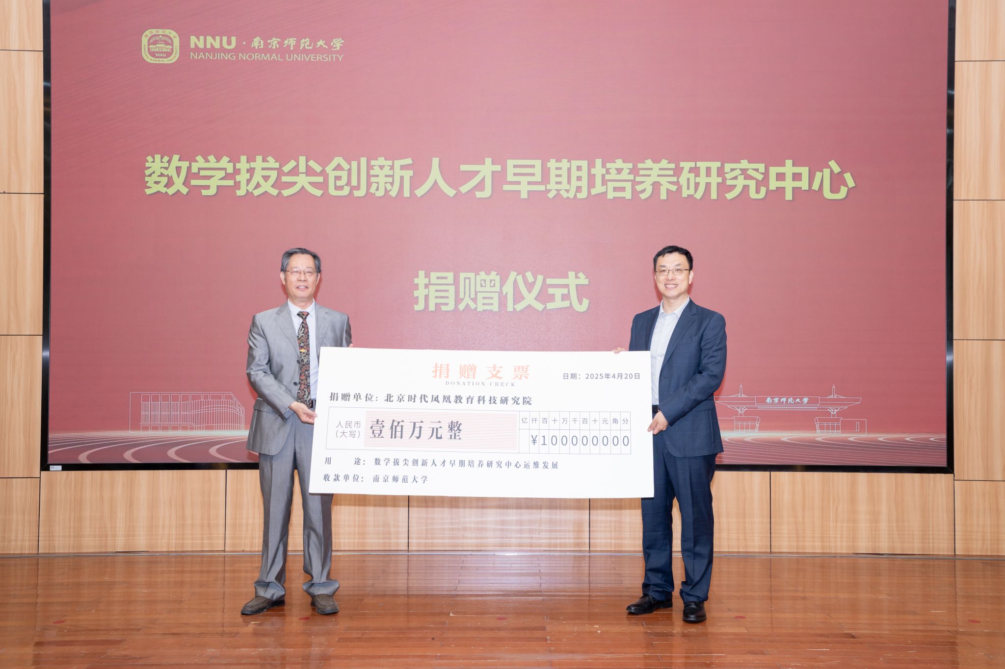 活动现场,陈明代表北京时代凤凰教育科技研究院向研究中心慷慨捐赠人民币100万元。陈明在致辞中感谢南师大对中国教育的杰出贡献,希望研究中心能够构建科学的数学拔尖创新人才早期识别与培养体系,推动人工智能和教育的深度融合,为基础教育发展注入新的活力。