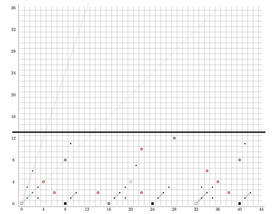 同伦不动点谱序列与切片谱序列是计算高阶实K理论同伦群的关键工具。学院段智鹏讲师与李谷川研究员、时骁霖助理教授合作的论文《Vanishing lines in chromatic homotopy theory》,证明了在有限群和任意高度下,所有此类谱序列均存在一个水平消失线,所有此线以上的元素都将消失,并给出了消失线的精确位置,如图1所示。成果发表于拓扑学领域的顶级期刊《Geometry & Topology》上。这一结果是色展同伦理论中的重要突破,既有深刻的理论意义,也为实际计算提供了指导。