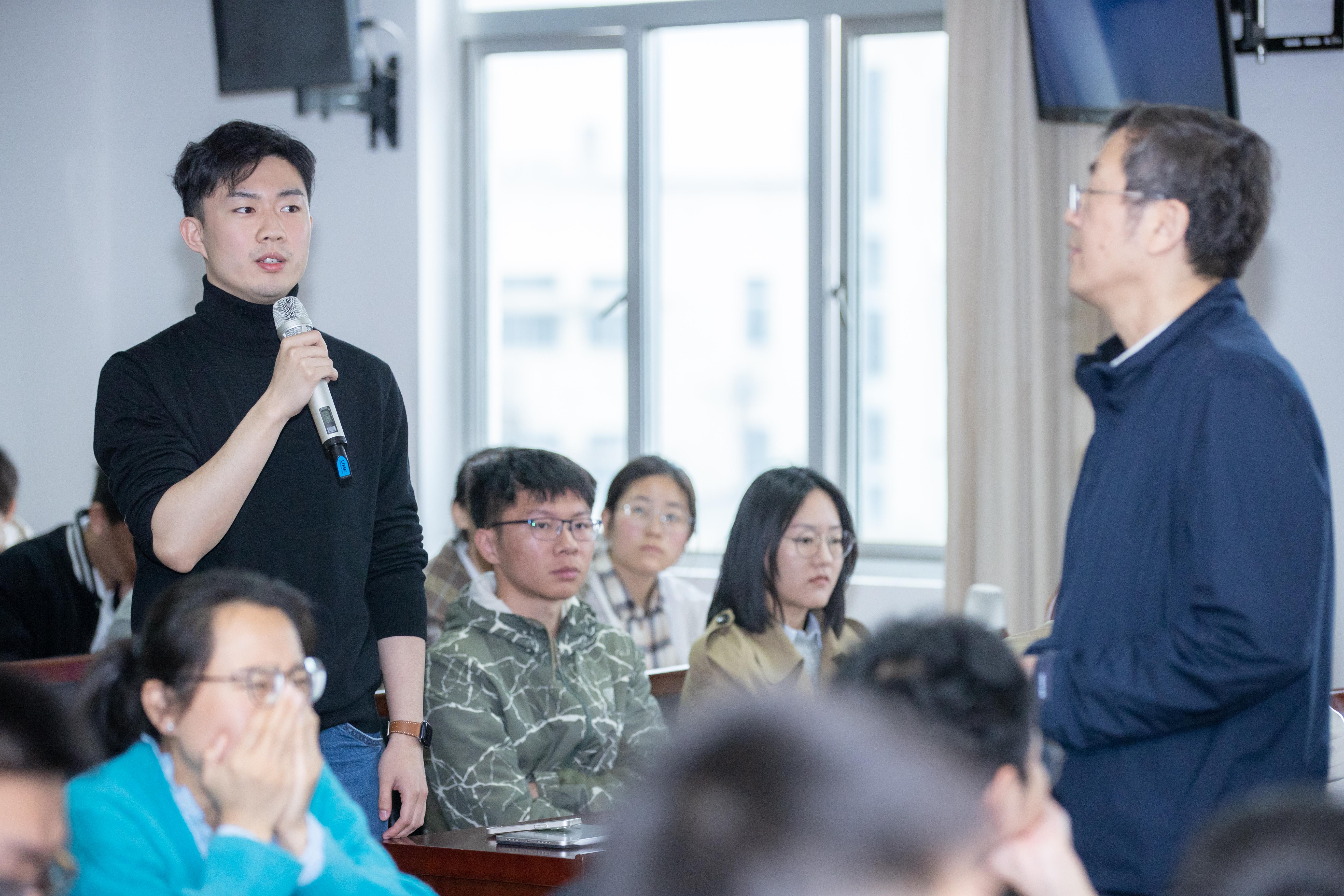 报告过程中,袁亚湘院士以浅显易懂的方式、风趣幽默的语言将复杂的数学问题、数学方法与常见问题的解决方法联系起来,分析他们的共通之处,从而建立方法之间的联系,加深对方法的理解。他教导同学们不要害怕表面复杂的数学公式,而是要深入了解公式背后隐含的原理、方法。他以陶哲轩等解决压缩感知问题为例,告诫同学们在学习和生活中如果遇到一时无法解决的问题时,不妨对问题做一些假设,想办法将困难的问题转化为易于解决的问题。报告结束后,同学们聚拢上前,请袁院士签名、与袁院士合影。同学们纷纷表示获益匪浅,袁院士的报告深入浅出,让大家充分领略了数学的美以及数学的重要性,点燃了大家热爱数学、钻研数学、献身数学的激情,更赋予了大家传播数学文化、投身数学研究、攻坚数学难题的责任和使命。