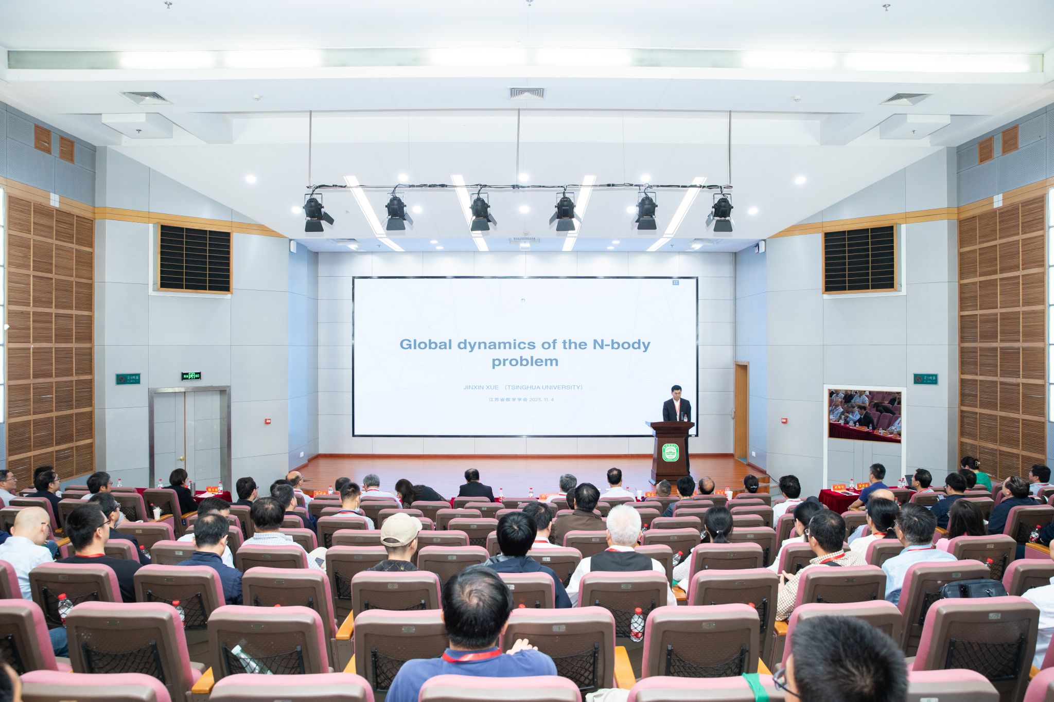 大会特邀清华大学薛金鑫教授作题为《N体问题的全局动力学》的大会报告,大会报告由程崇庆教授主持。薛金鑫教授介绍了N体问题的历史,及他在几个经典问题上的探索和研究。大会还设有四个分会场报告,来自江苏省内多所高校的20多名学者在分会场报告最新研究成果,报告涵盖数学学科各个方向和领域,为与会者提供了深入了解当前科研研究和应用进展的机会。