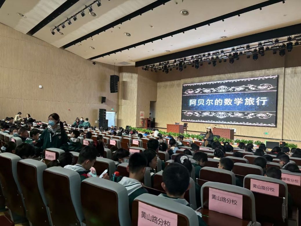邀请,田刚院士为学院师生作科普报告,王长平教授和陈猛教授与学院师生开展了学术交流活动。华东师范大学原创数学话剧团队于25日下午在南京师范大学附属中学仙林学校举办《阿贝尔的数学旅行》的话剧演出,来自南京12所中学470余名师生观看了此次话剧演出,部分学术年会参会老师也前往现场观看话剧演出。