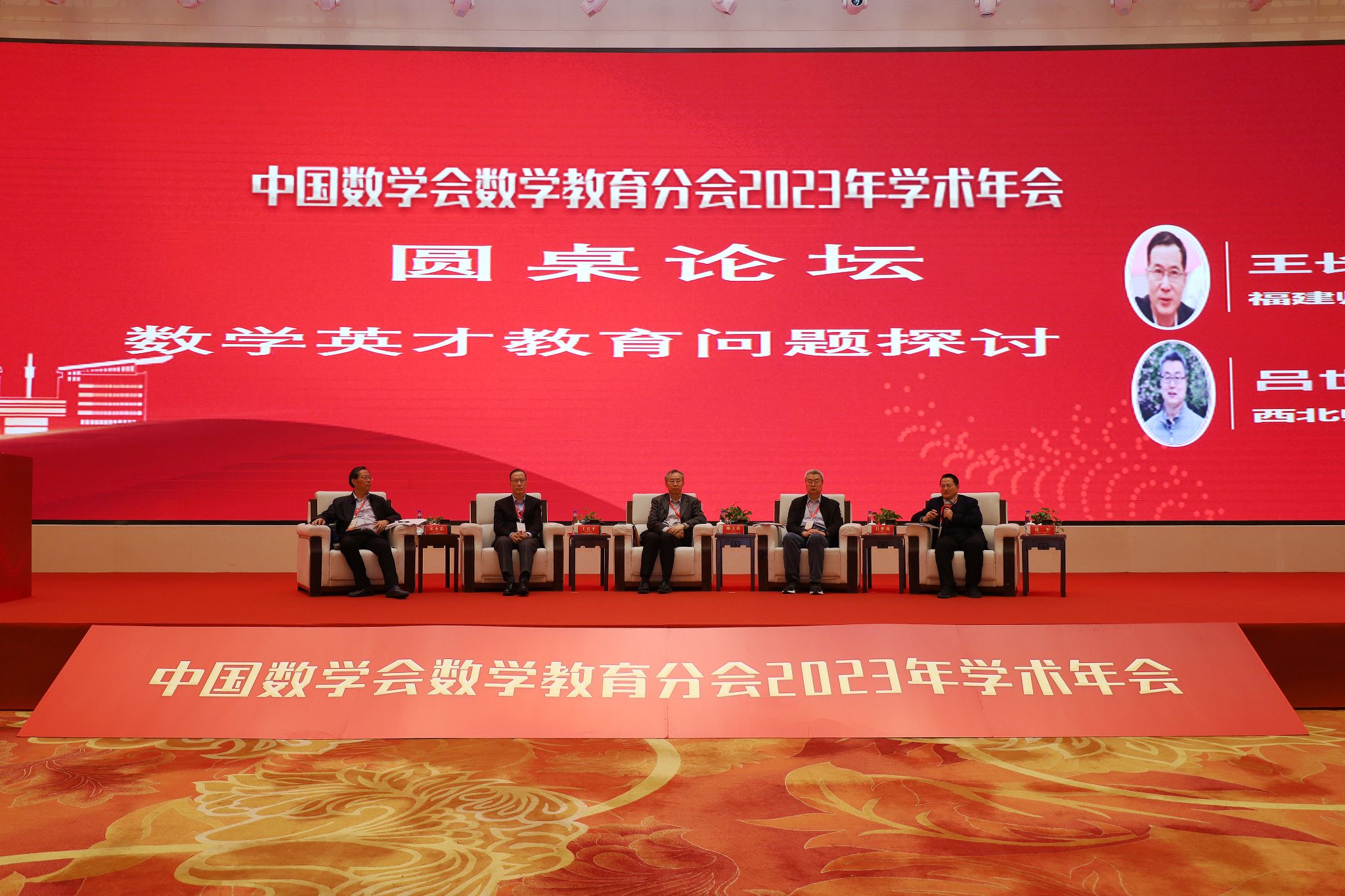 会议期间,南京师范大学原党委书记、教授宋永忠作为召集人,召集福建师范大学教授王长平、北京大学教授陈大岳、西北师范大学教授吕世虎、南京师范大学附属中学党委书记葛军,共同开展了主题为“数学英才教育问题探讨”的圆桌论坛。论坛倡导积极响应国家提出的“英才计划”,促进中学教育与大学教育相衔接,建立高校与中学联合发现和培养青少年科技创新人才的有效模式,为青少年科技创新人才不断涌现和成长营造良好的社会氛围。
