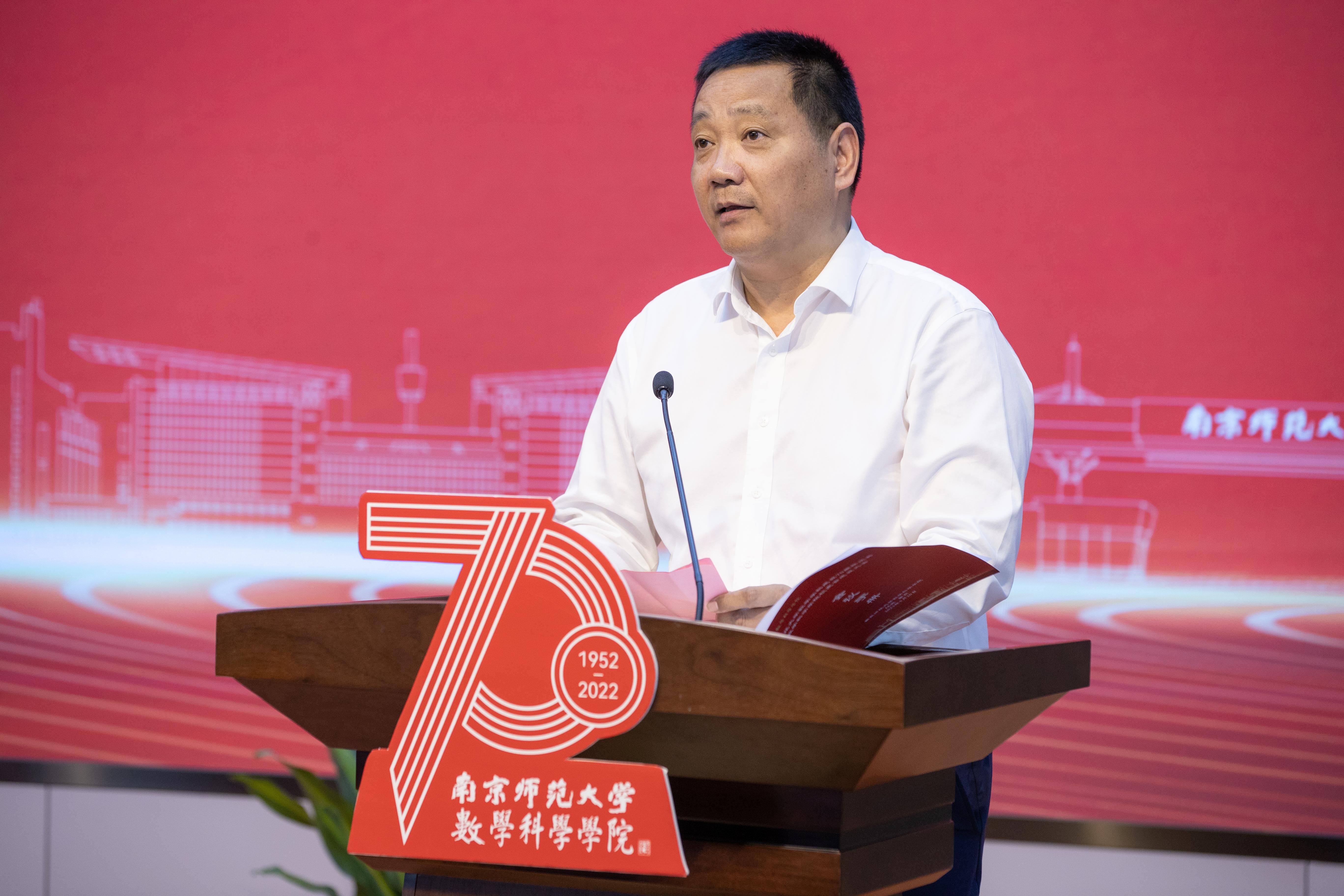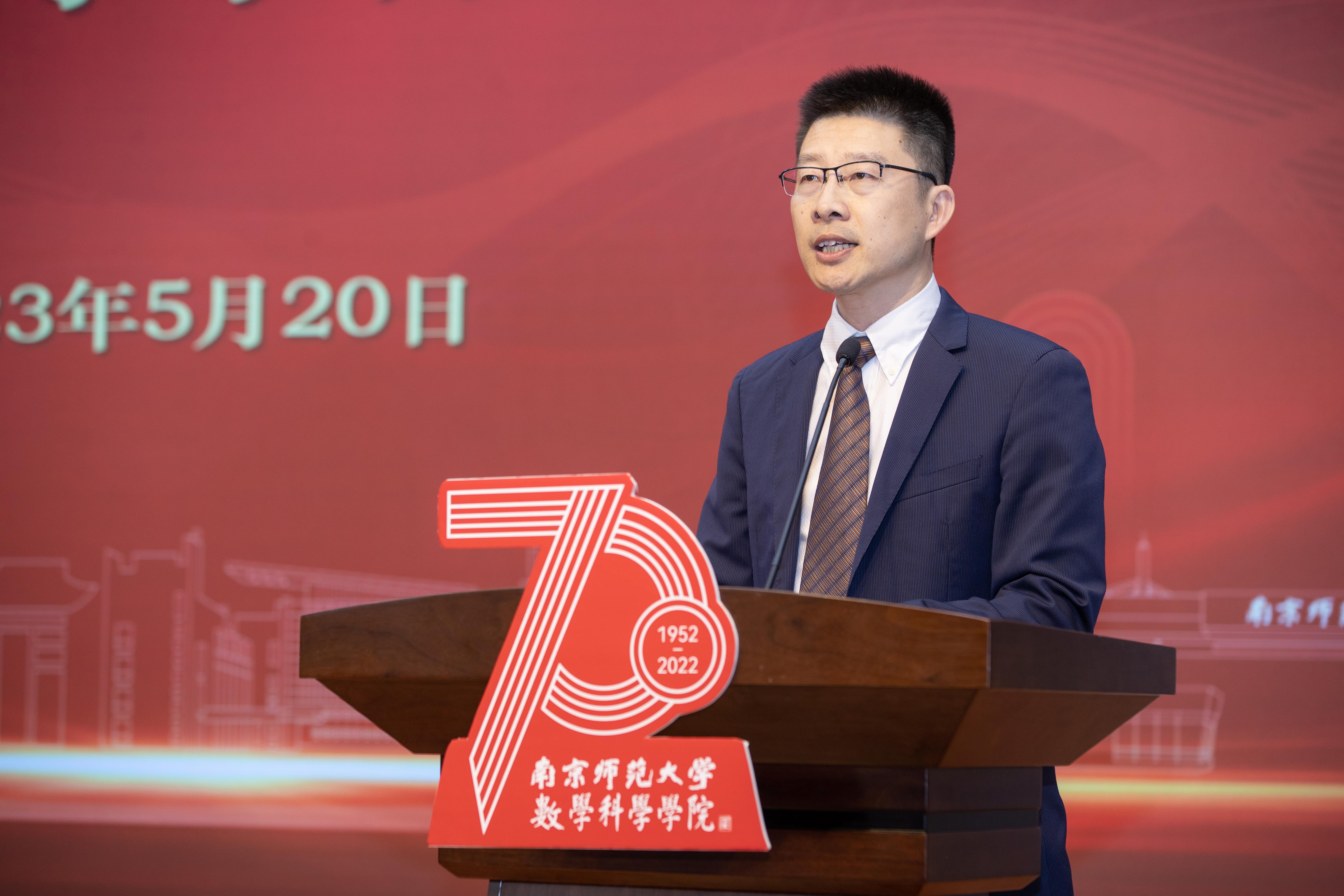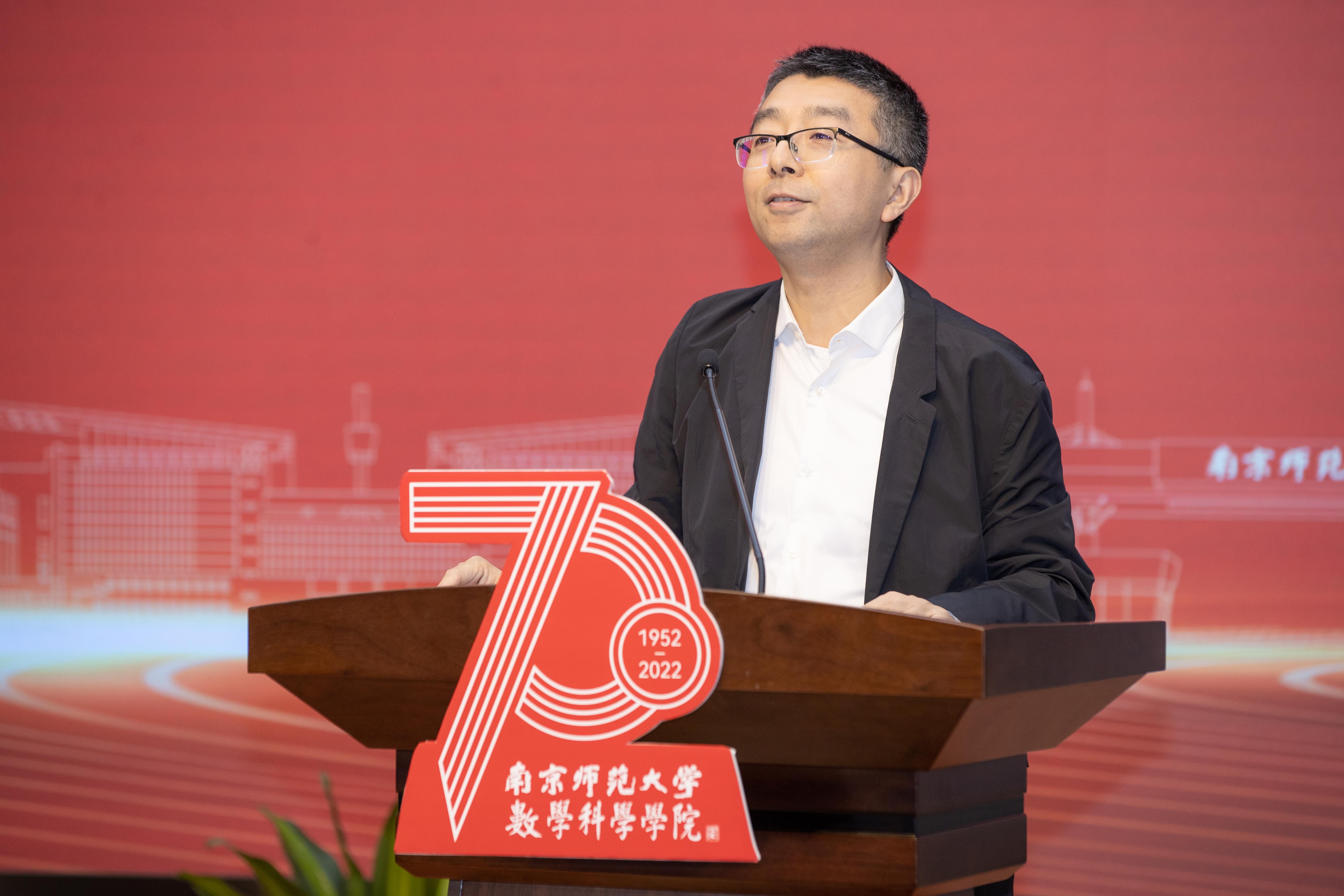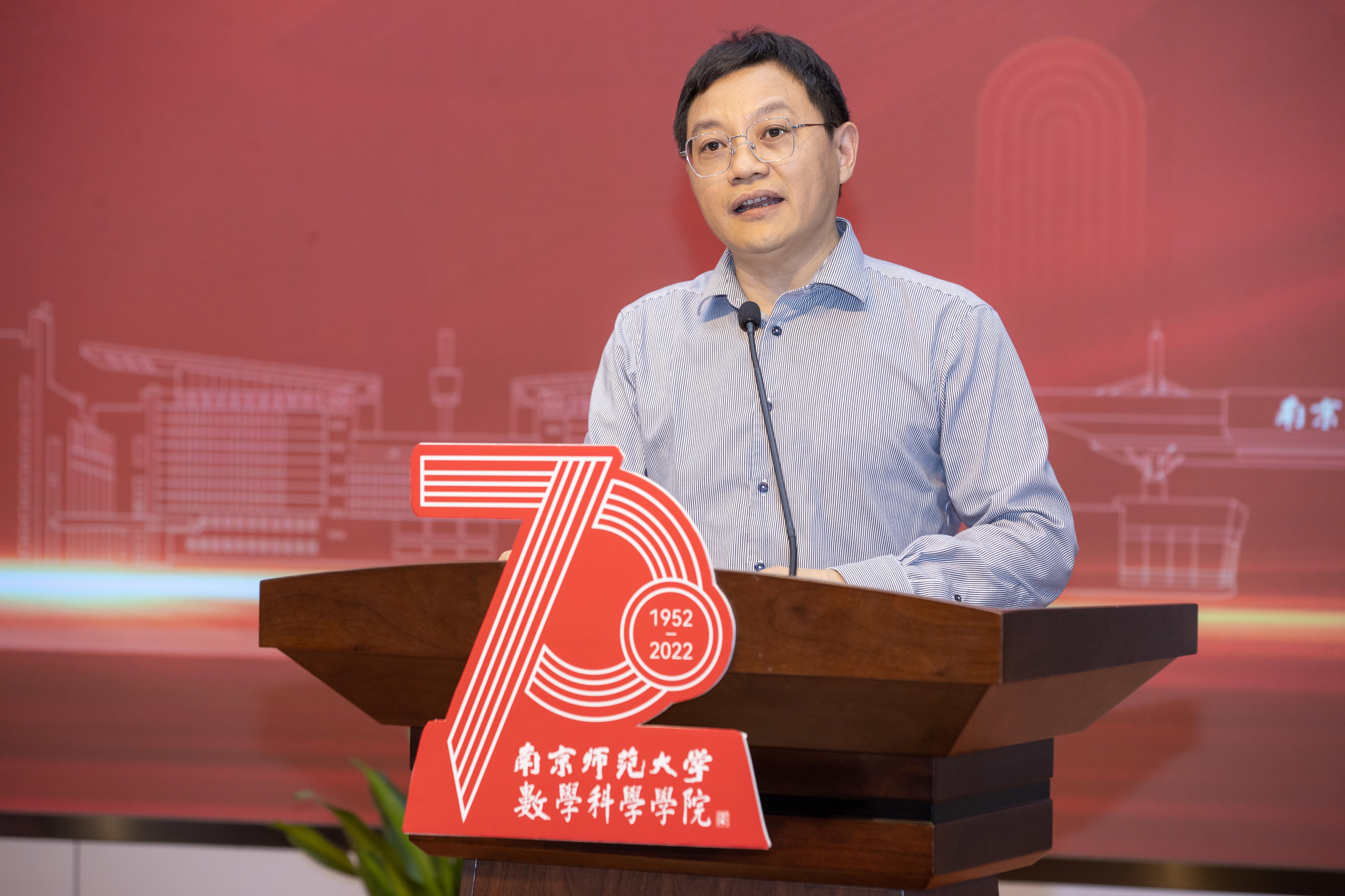 南京大学数学系系主任喻良代表兄弟高校致辞。他表示,两院在人才培养、学术科研等方面有着深度密切合作,成绩显著,尤其是人才培养方面,目前已有150多名南师数院学子先后前往南大数学系开展驻学学习交流。他相信未来两院能以更高的历史站位、更深刻的战略眼光,在更广阔的合作领域加强合作与交流。