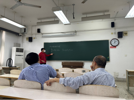 2023年5月18日周四下午14:00,校教学督导邱道骥教授、数科院副院长周海燕教授、院教学督导纪春岗教授、严从华教授、杨明升教授以及新教师的教学导师杜其奎教授、纪春岗教授、王雨顺教授组成的专家组在学明楼212室成功开展了名师工作坊活动。