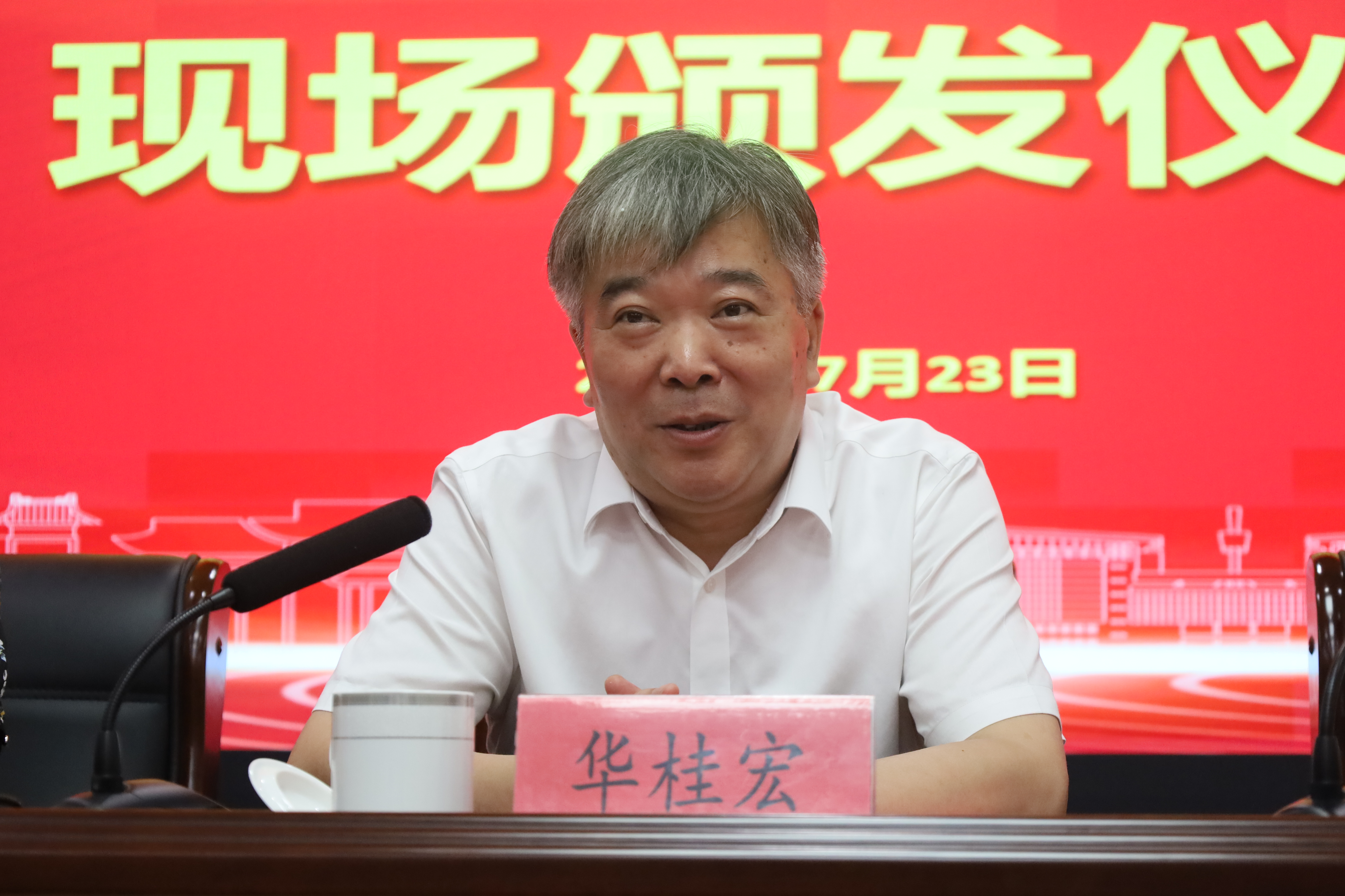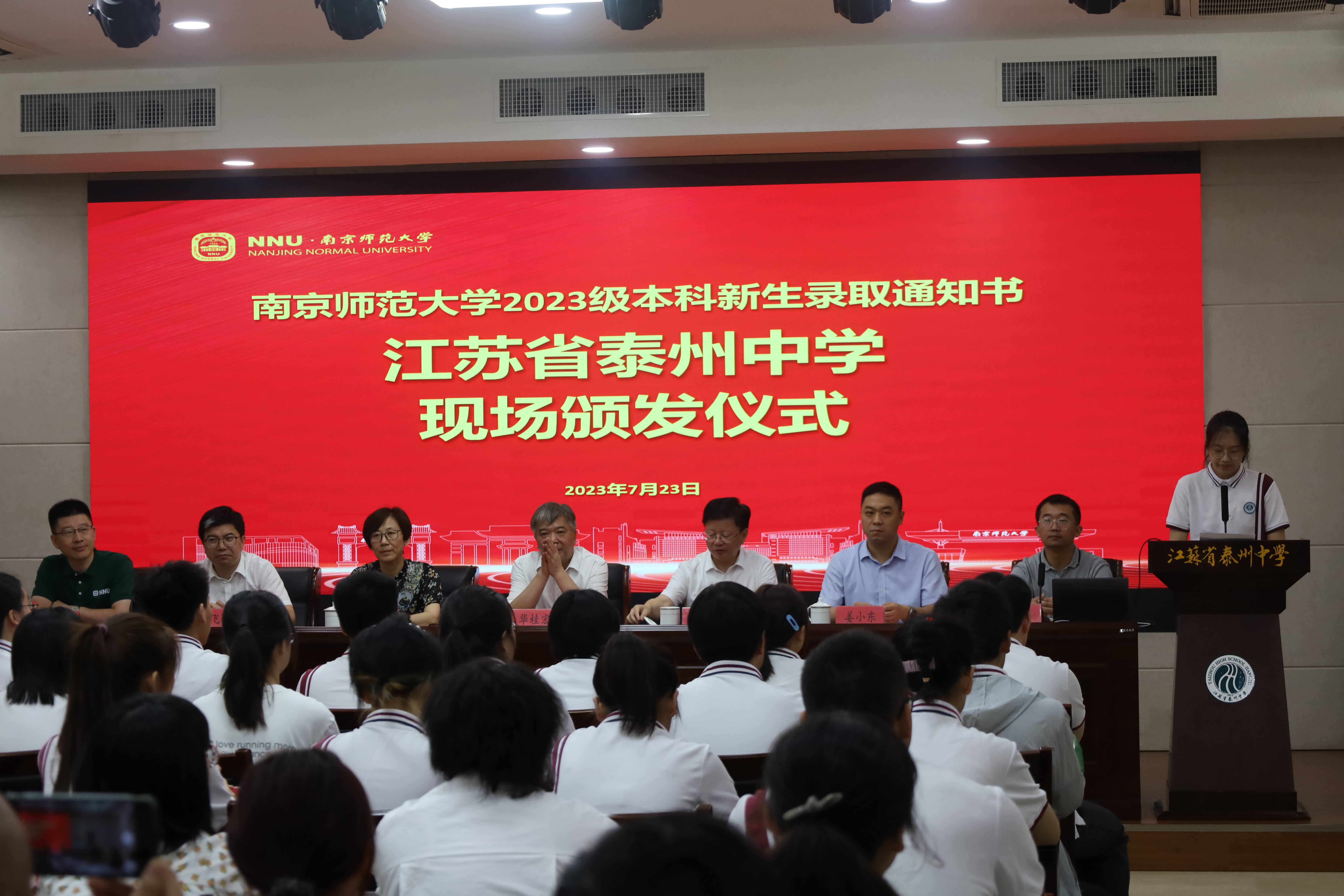 党委书记徐剑波、副书记喻华杰以及江苏省泰州中学校长封留才、副校长许志勤、见习校长周鑫森等老师、学生及家长们共同参加了录取通知书颁发仪式。仪式由江苏省泰州中学见习校长周鑫森主持。