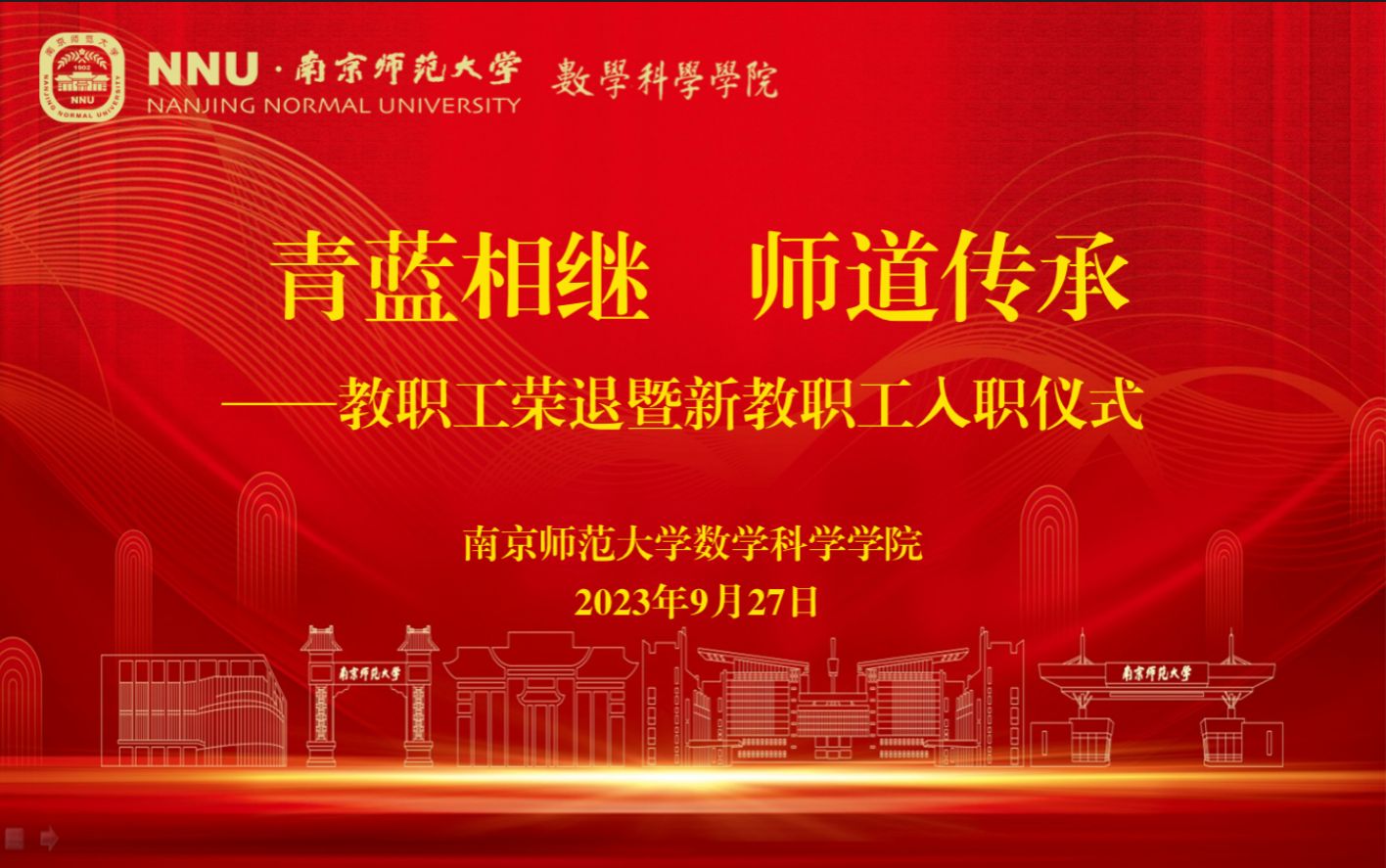 金秋送爽,中秋将至。9月27日,“青蓝相继,师道传承”数科院教师荣退暨新教师入职仪式在行健楼544室如期举行。学院党委书记徐剑波、院长汪艳秋等党政班子成员,院老领导、原党委书记王春生、原副院长钱月芬,荣退教师、新入职教师代表出席并参加了本次活动。活动由学院副院长王锋主持。