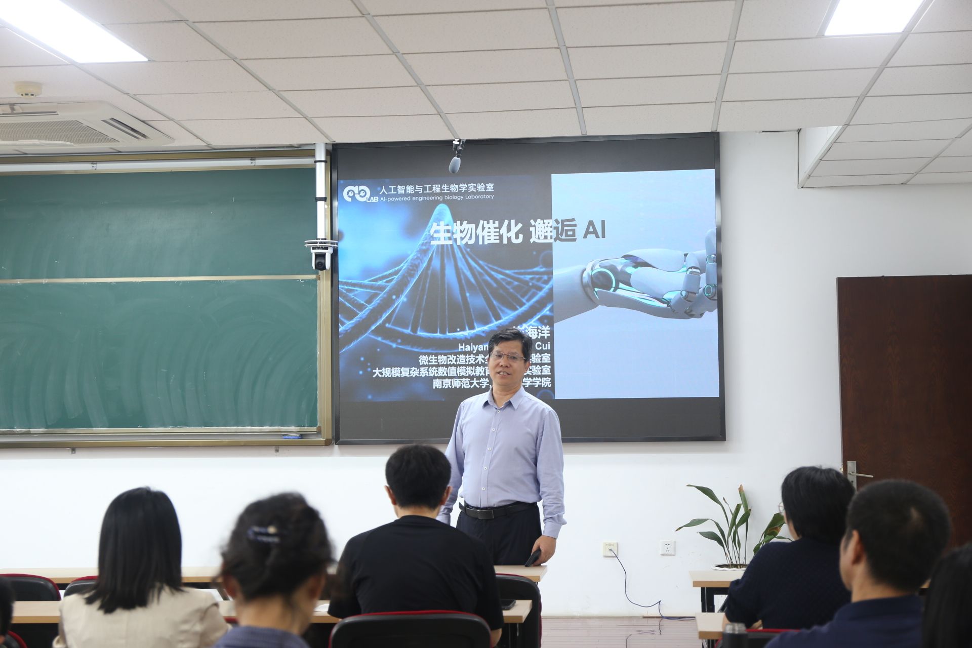 南京师范大学大规模复杂系统数值模拟教育部重点实验室是多学科交叉的科研平台,每年组织多场专题报告会,邀请不同领域的专家交流最新的研究成果,已经成为南师大学科交叉的重要引擎。这次专题会邀请了生命科学学院的崔海洋教授,他既是大规模复杂系统数值模拟教育部重点实验室的固定成员,也是微生物改造技术全国重点实验室固定成员。他是煤炭重大专项-青年首席,国家级青年人才,江苏省特聘教授;2016年硕士毕业于中科院天津工业生物技术研究所(导师:郭瑞庭 教授);2020年,博士毕业于德国亚琛工业大学(导师:Ulrich Schwaneberg教授);同年,进入德国DWI-莱布尼茨互动材料研究所进行博士后研究;2021-2023年于美国伊利诺伊大学厄巴纳-香槟分校继续进行博士后研究(导师:Huimin Zhao教授)。2024年加入南京师范大学,组建“人工智能与工程生物学”研究团队,搭建超算平台Infinity(无穷生物超算集群)。已发表SCI论文52篇,其中一作通讯(含共同)27篇(Top 22篇,包括Nature, Science, Angew. Chemi., Nat. Commun.等; 封面文章7篇; Hot Paper 4篇);申请专利7项, 授权2项;并应邀在国际权威丛书 Methods in Molecular Biology 分别撰写独立章节3章。ABLab课题组网站://www.oceancuilab.com