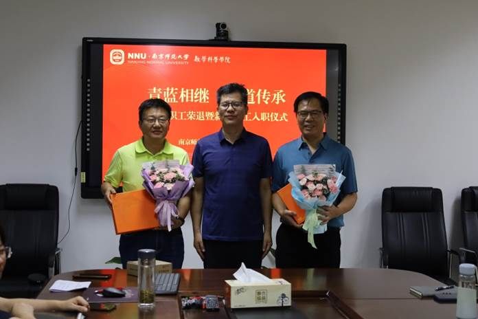 王雨顺书记首先为荣退老师赠送了退休纪念水晶台与鲜花,充分肯定了各位退休老师为学校和学院事业发展作出的贡献,表达了学院党委对他们躬耕三尺讲坛、矢志立德树人的感激之情;接着他向学院新入职的老师赠送了学院定制的笔记本与签字笔,希望他们记录好在数科院成长与发展的荣光时刻和出色业绩。